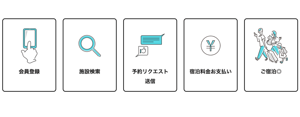 エリア/宿泊日・人数選択/設備等の絞り込み検索が可能!