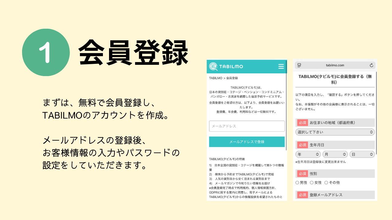 まずはご予約前に、会員登録(無料)!