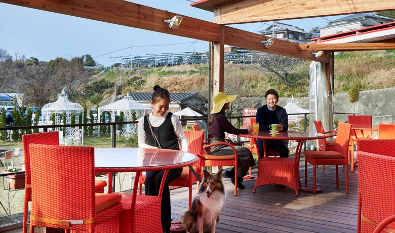 淡路島の食材をふんだんに使った料理が楽しめる農家レストラン。自然に囲まれたテラス席では犬連れでの食事が可能で、のどかな雰囲気の中ゆったりとした時間を過ごせます。周囲は緑が多く、食後の軽い散策にも最適。犬にとっても刺激が少なく落ち着ける環境のため、長めのランチにもおすすめです。
