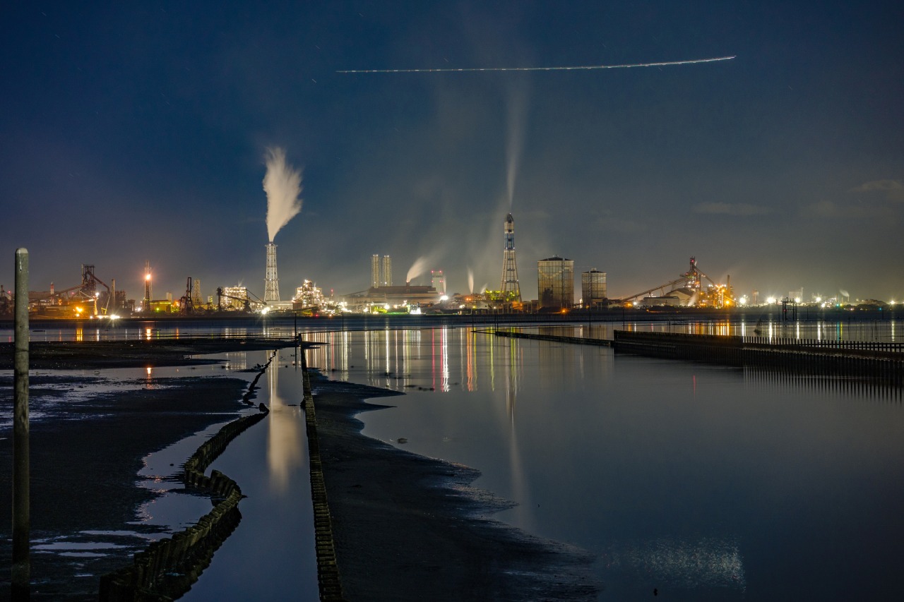 江川海岸は「日本のウユニ湖」とも呼ばれ、海に浮かぶ電柱の絶景で知られていた木更津の人気スポットです。電柱の老朽化が進み撤去されていますが、潮干狩りシーズンには多くの人で賑わい、アクアラインや美しい工場夜景も楽しめます。夕暮れも夜景も絶景なのでデートにもおすすめのスポットです。
