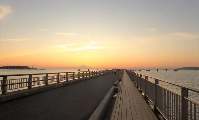 館山夕日桟橋は日本一長く、約500mの桟橋です。まるで海の上を歩いているような感覚で、絶景を楽しめます。