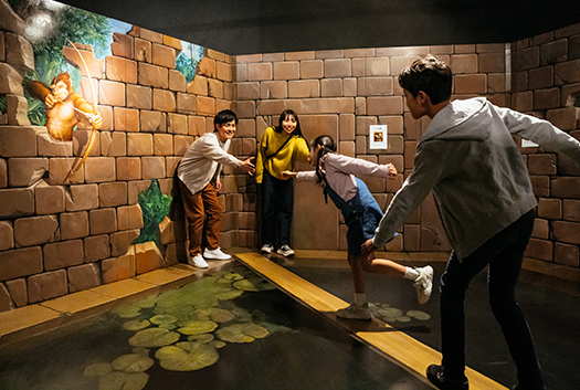 日本最大級のトリックアート美術館です。作品に触ったり、面白いポーズで写真を撮ったり、まるで絵の中に入り込んだような体験ができます。子どもから大人まで夢中になること間違いなしです。屋内なので雨の日でも安心。抱っこやカートででワンちゃんも一緒に入館でき、愛犬との面白い記念写真も撮れます。家族や友人、誰と訪れても笑顔になれるスポットです。