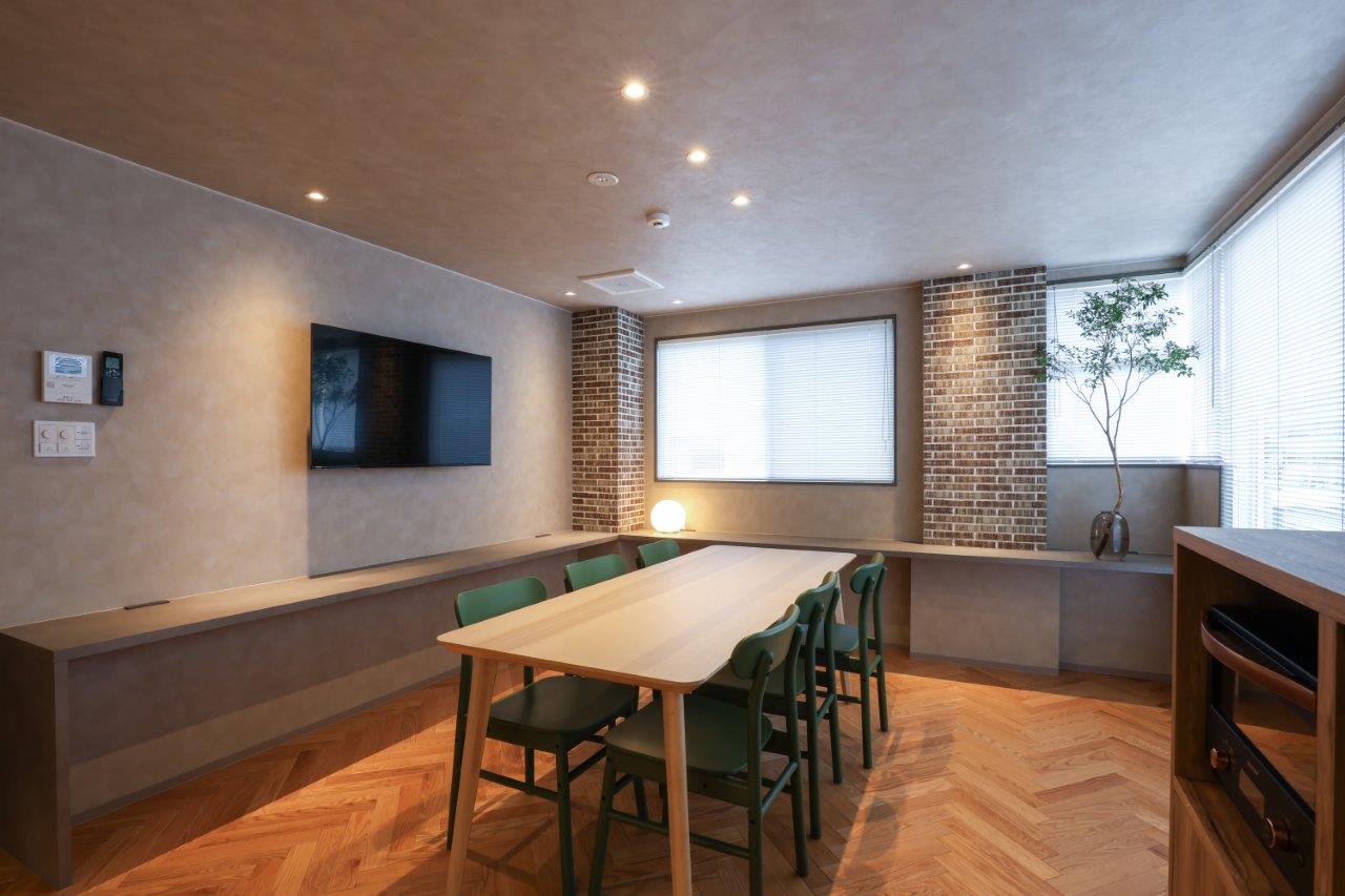 システムキッチン(ガスコンロ3口)、冷蔵庫、炊飯ジャー(10合×1台・5合×1台)、オーブンレンジ、湯沸しポッド、トースター