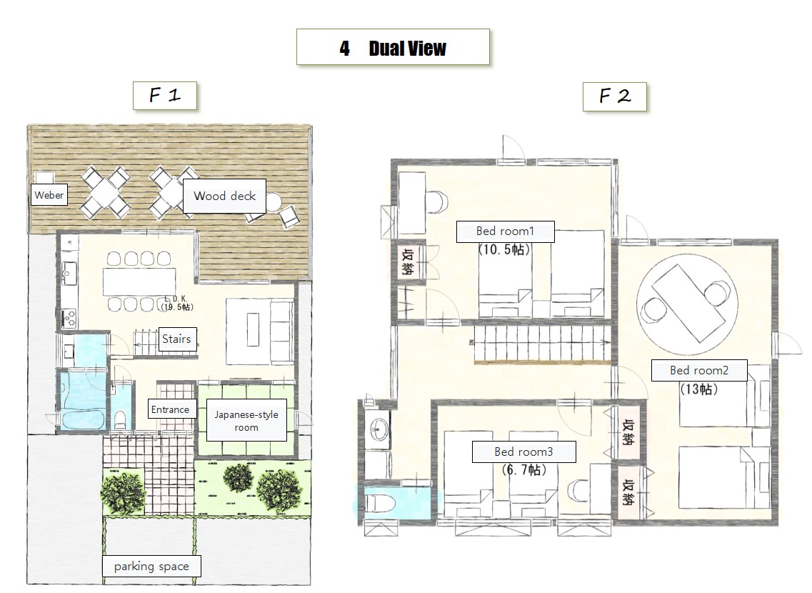 本格BBQを楽しめる、Weber社製の大型ガスグリルを設置。折りたたみ式サイドテーブルや前面ツールフックが調理を快適にサポートします。ポリッシュ仕上げの温度調節ダイヤルと蓋ハンドルが、スタイリッシュな雰囲気を演出します。
