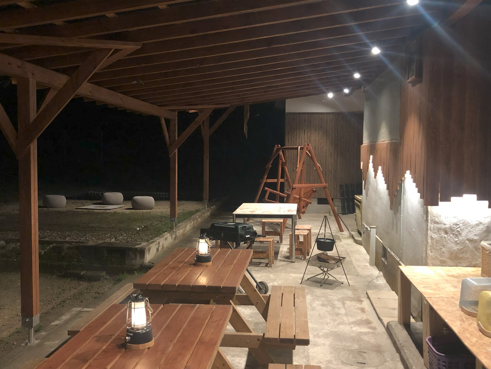 BBQテラスでは音楽聴きながら囲炉裏や焚き火、そうめん流しなどゆっくりとした時間の中で楽しんで頂けます。