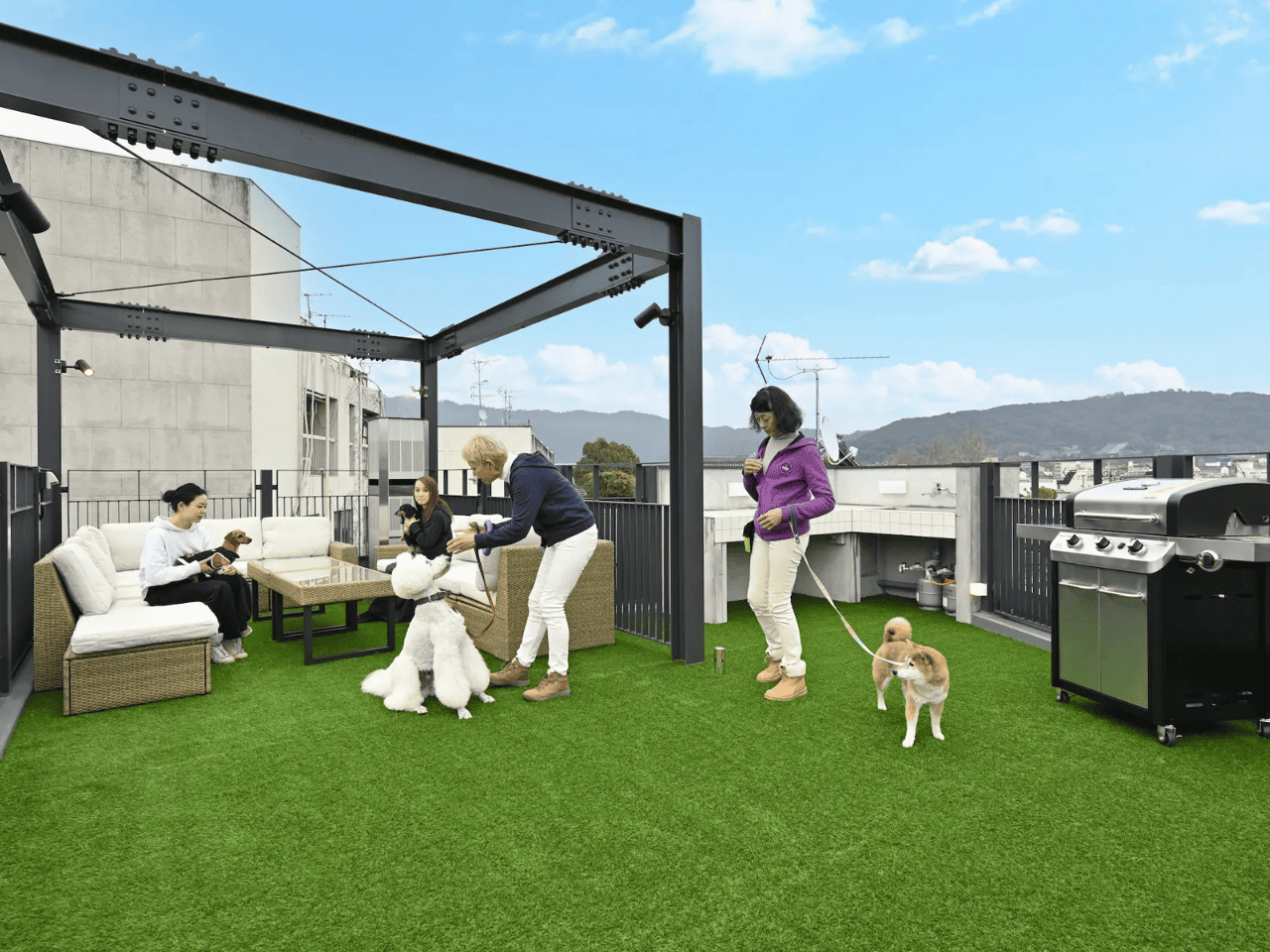 ルーフトップには、人工芝が敷かれたテラスがあり、ワンちゃんも伸び伸びと過ごせます。