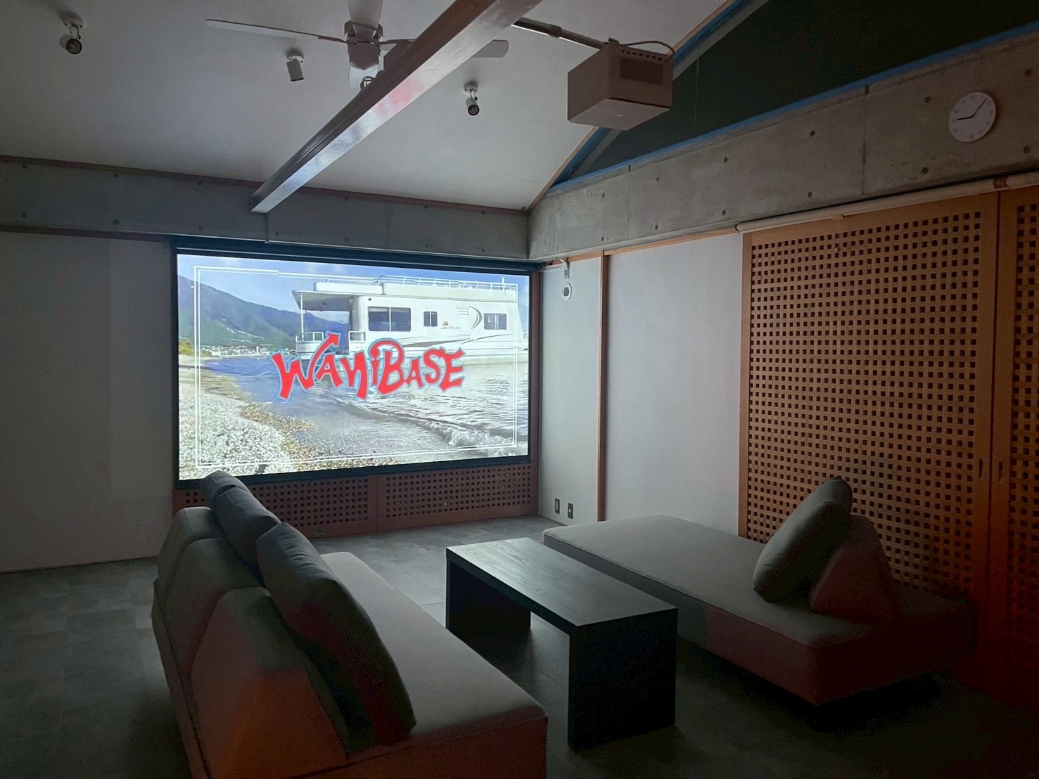 広々リビング&ダイニングには120㌅のド迫力プロジェクターとソファーベッドが2つありゴロゴロ快適。