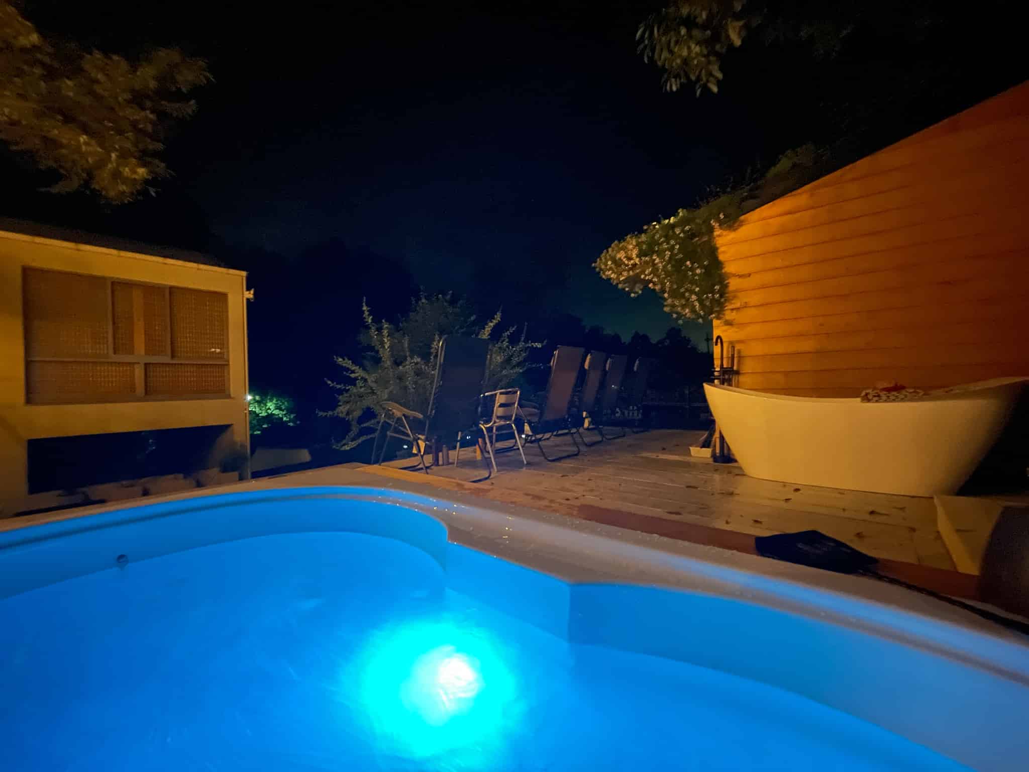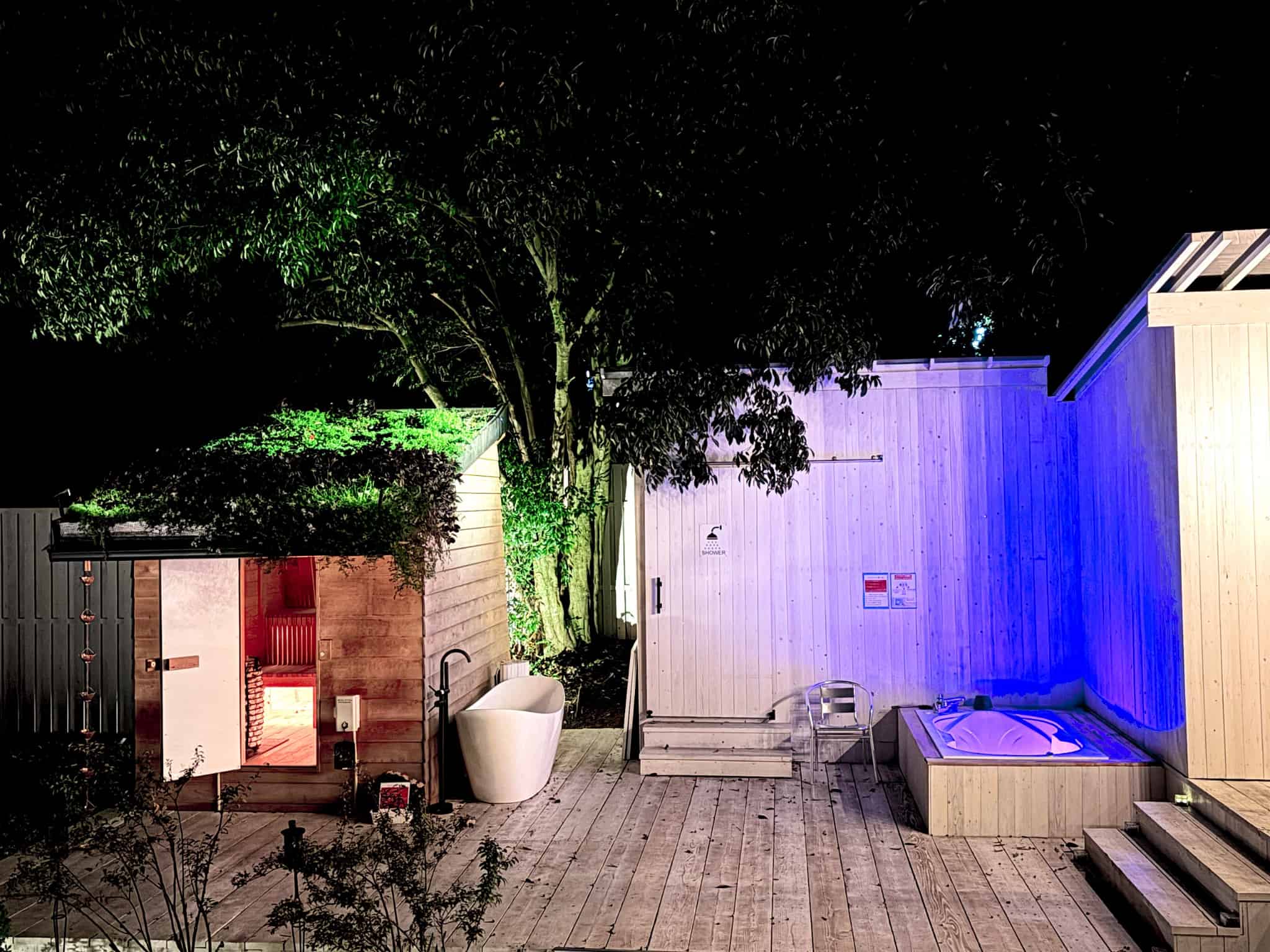 比良山麓の静かな夜を守るため、**屋外(サウナ・ジャグジー・ウッドデッキ等)のご利用は【21:00まで】**とさせていただきます。大声や音楽スピーカー、花火等の騒音は終日禁止です。