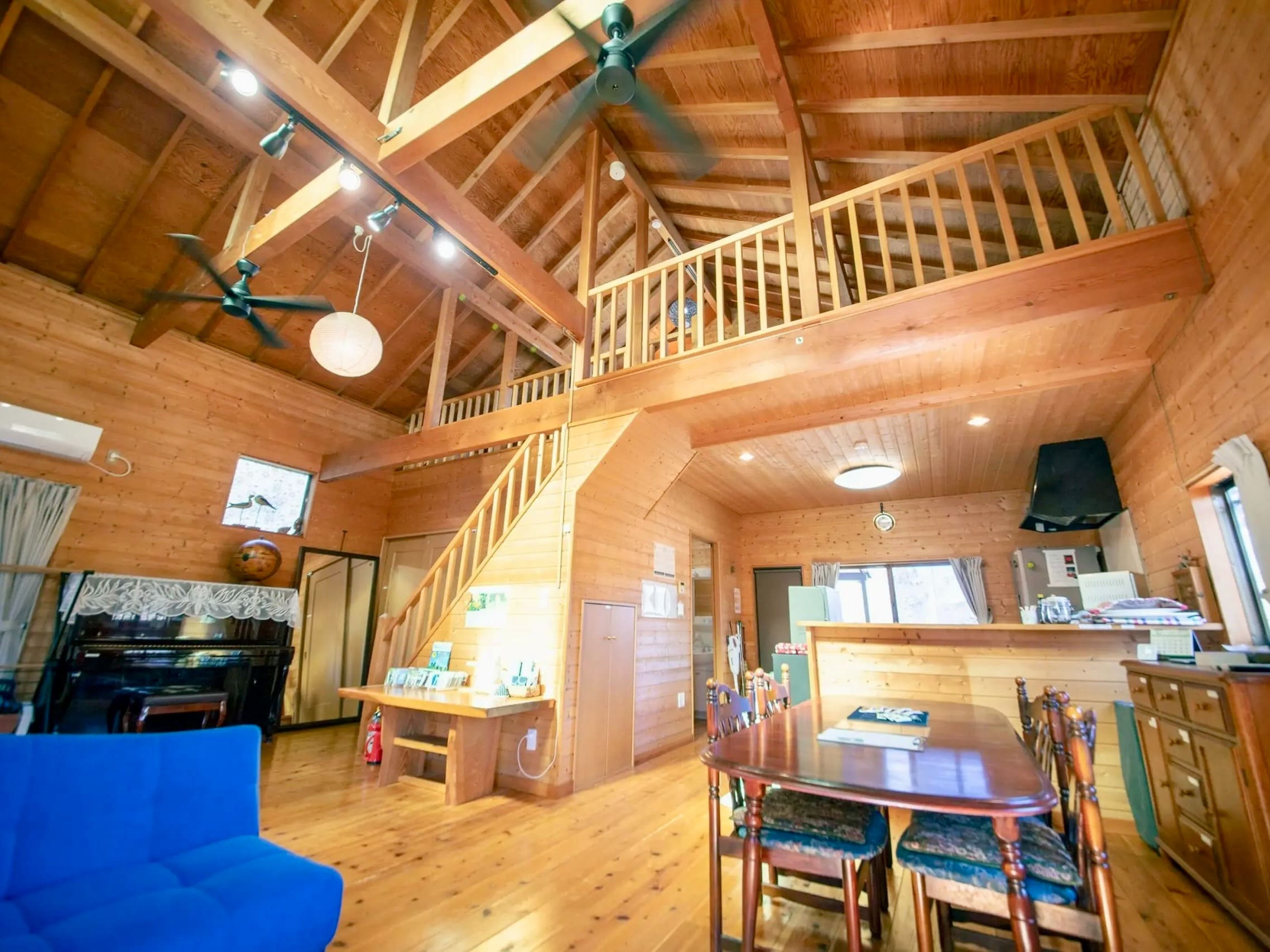 2階建コテージ1棟貸。開放感あふれる最大6m超えの天井