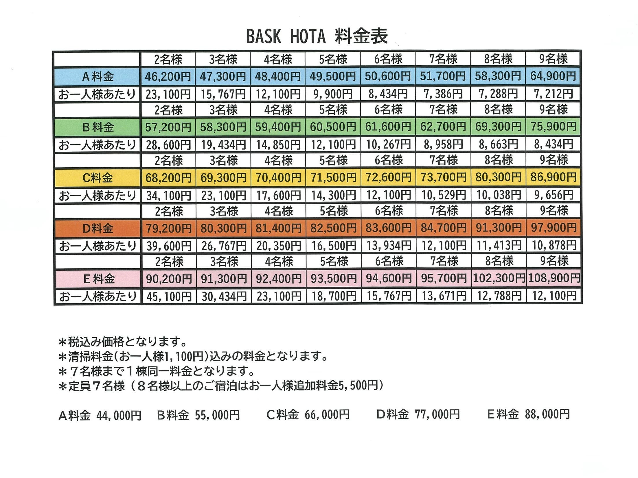 ※曜日、シーズンで料金が変動いたしますので、お問い合わせいただきましたらお見積もりいたします。