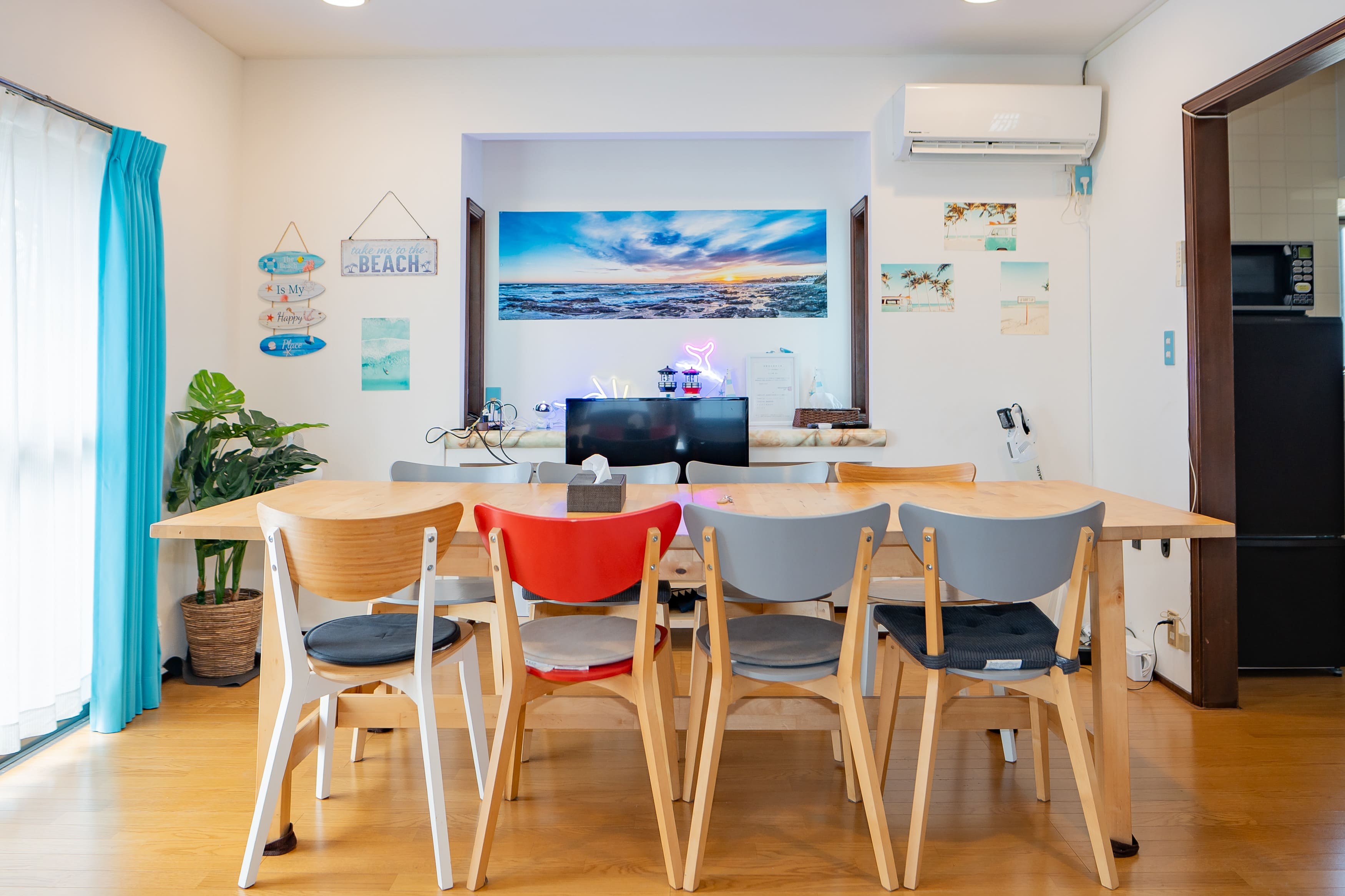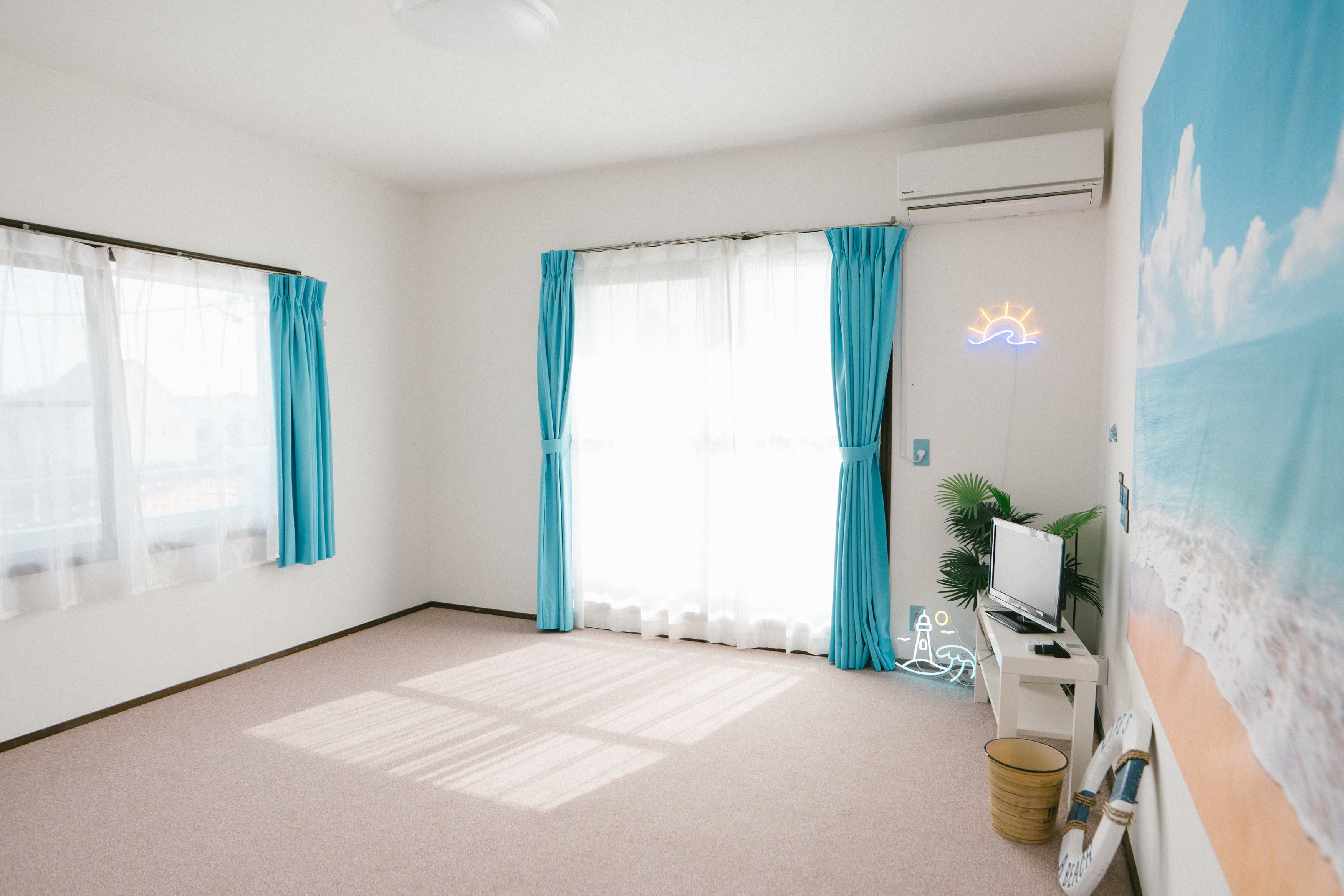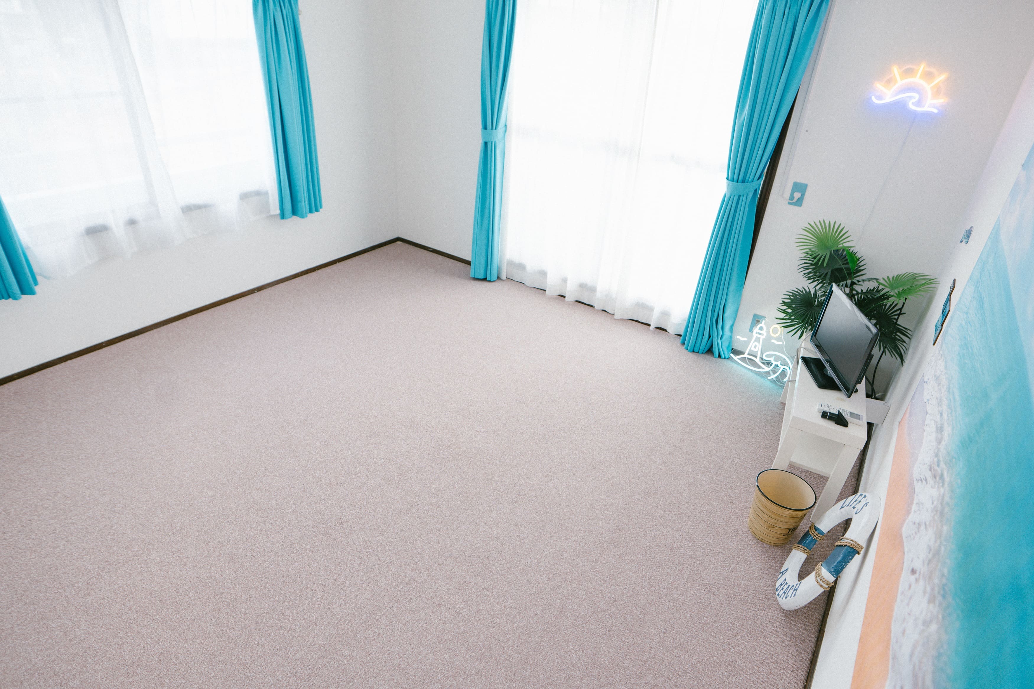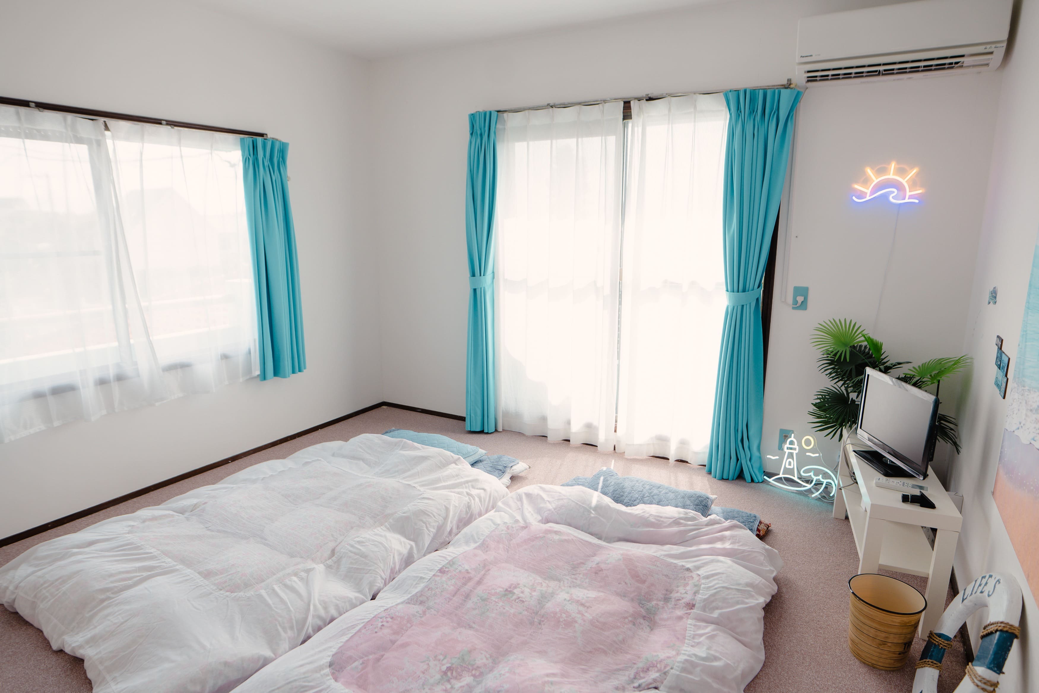 LDKの一戸建て【OCEAN BLUE MINT】は、和室1部屋、洋室2部屋で大人数でも宿泊いただけます。