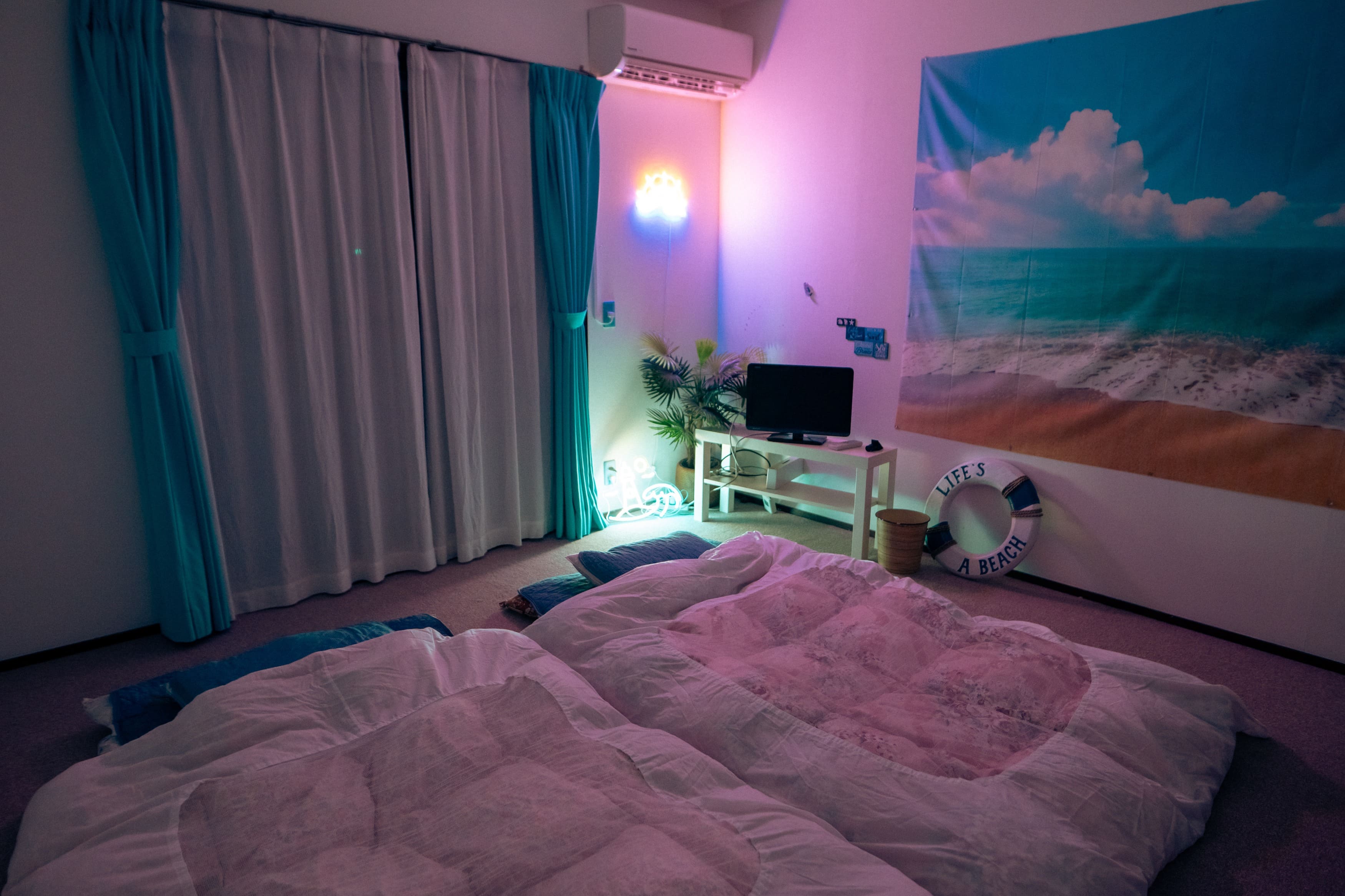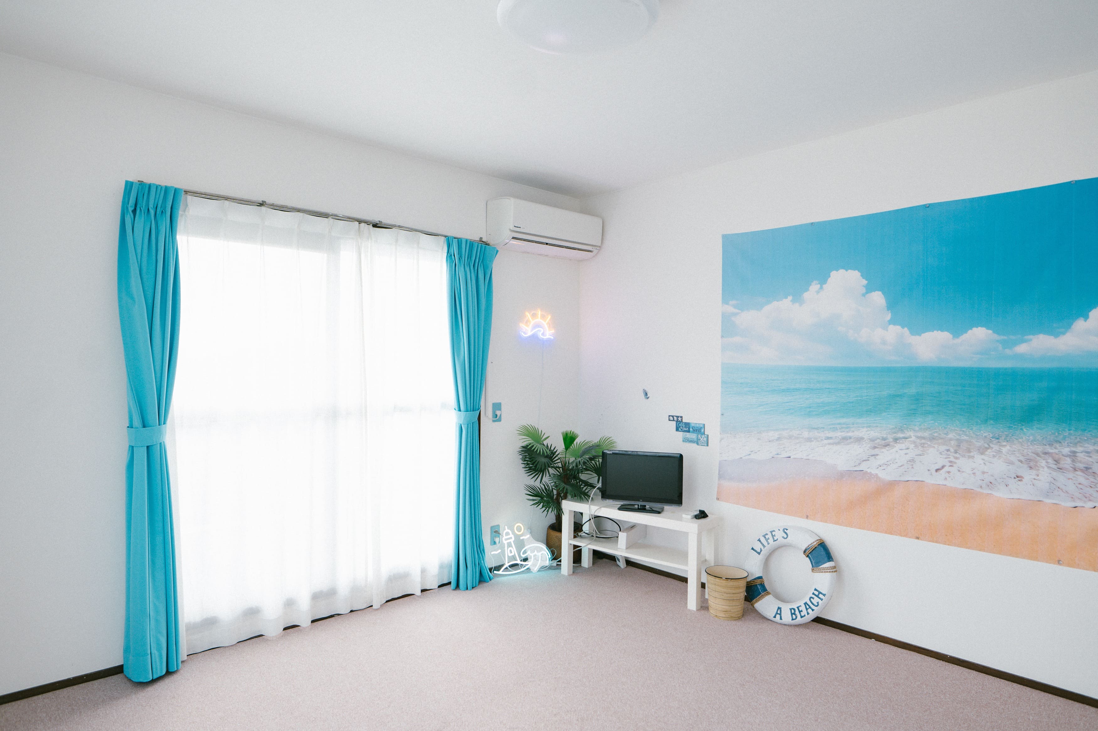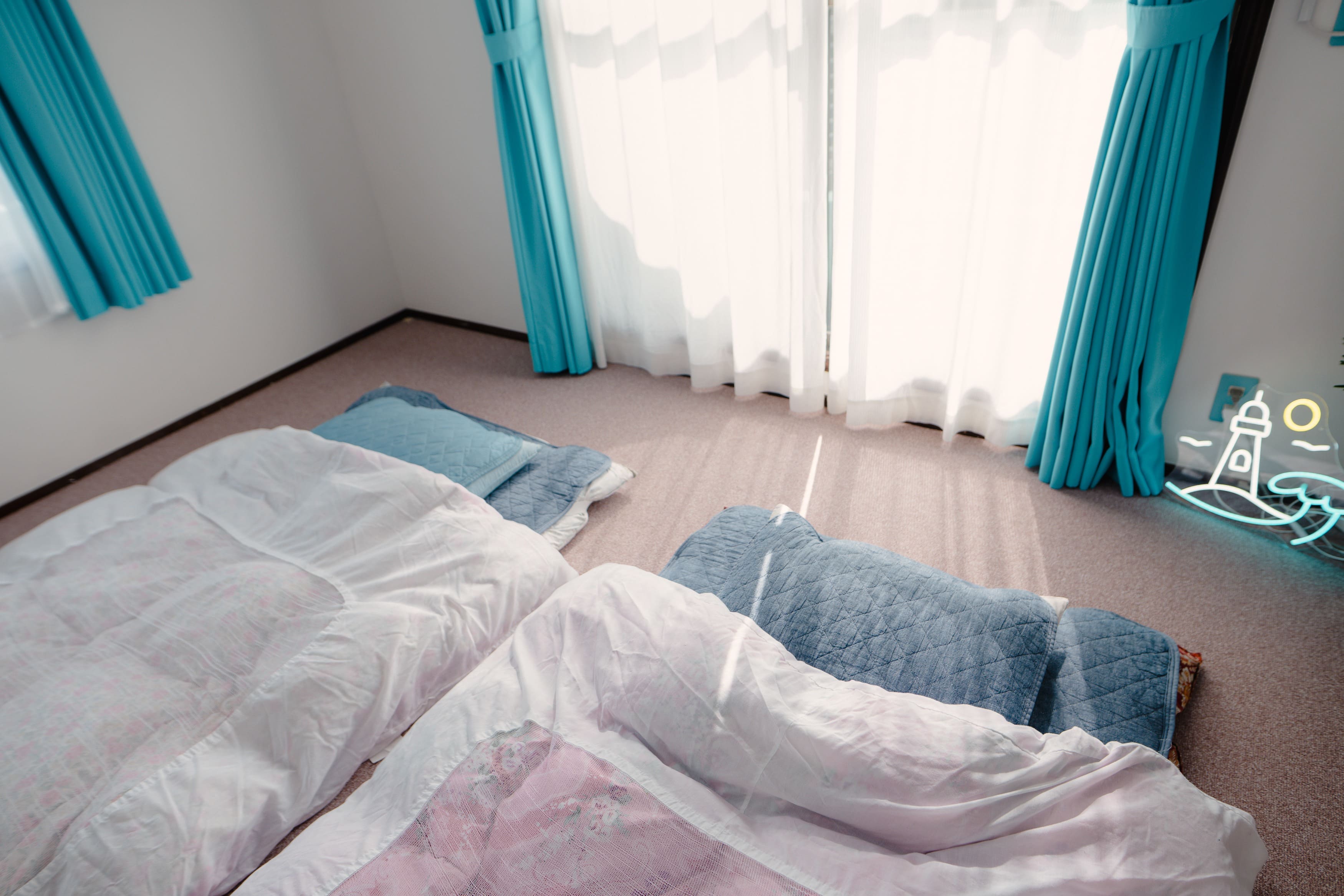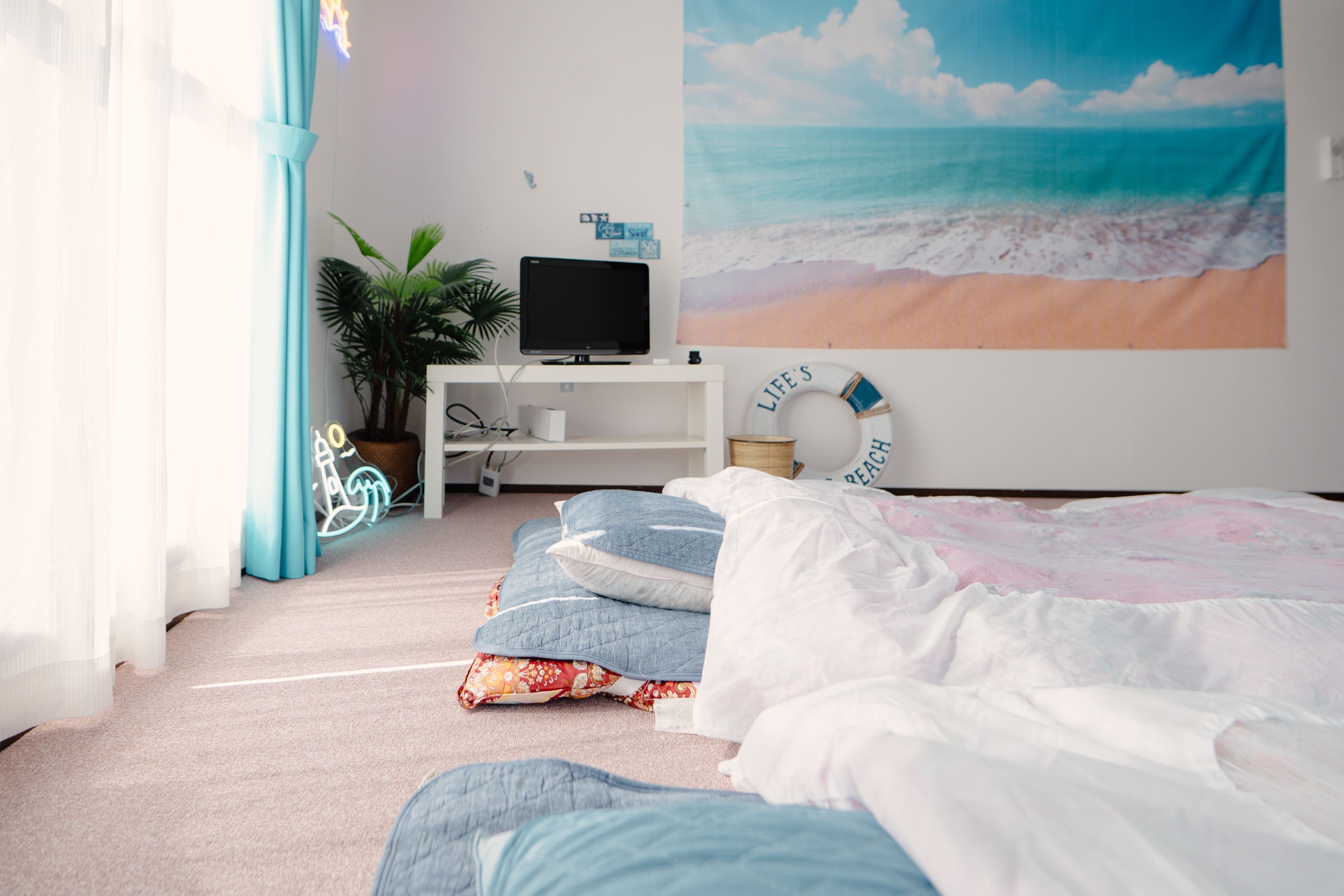 LDKの一戸建て【OCEAN BLUE MINT】は、和室1部屋、洋室2部屋で大人数でも宿泊いただけます。