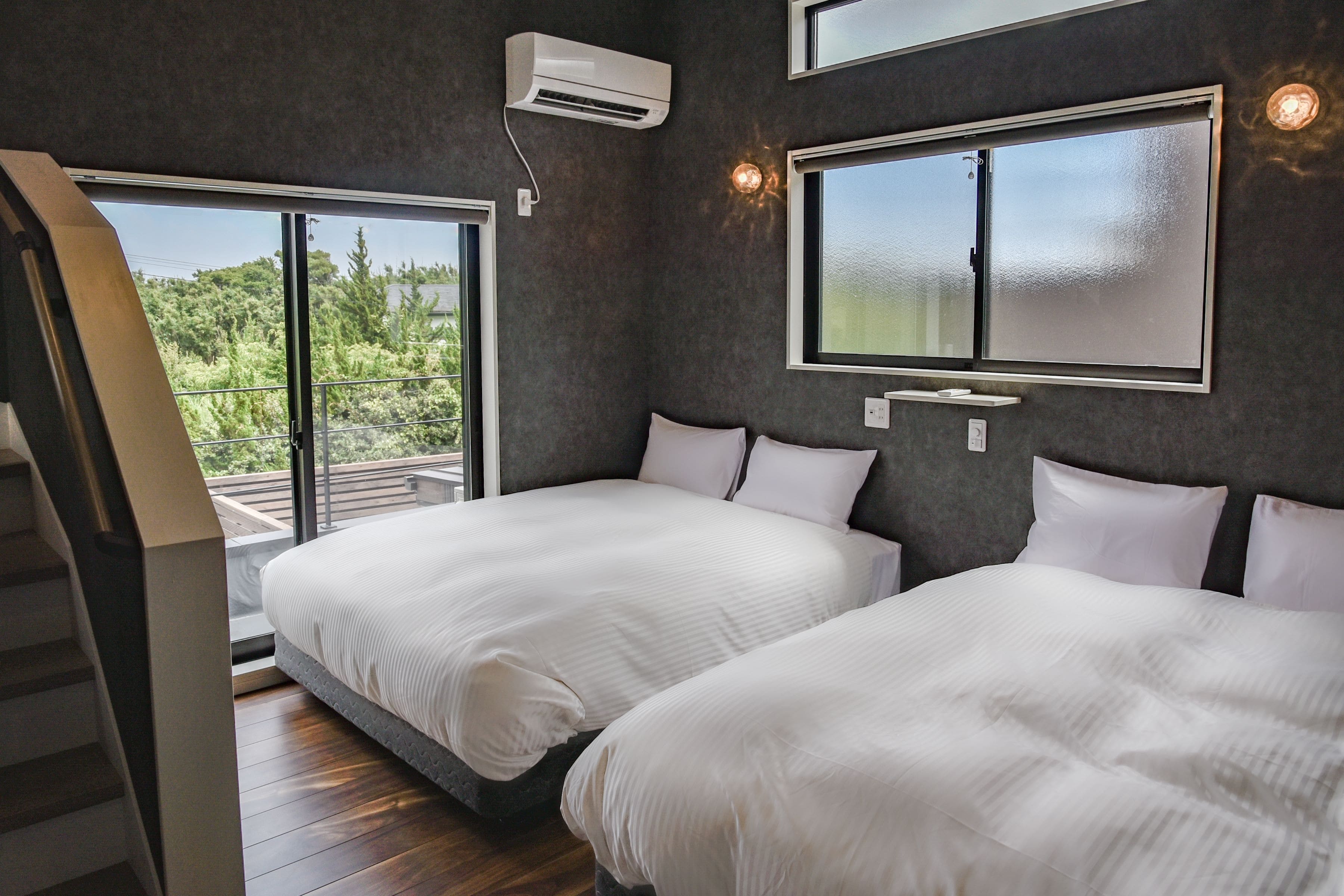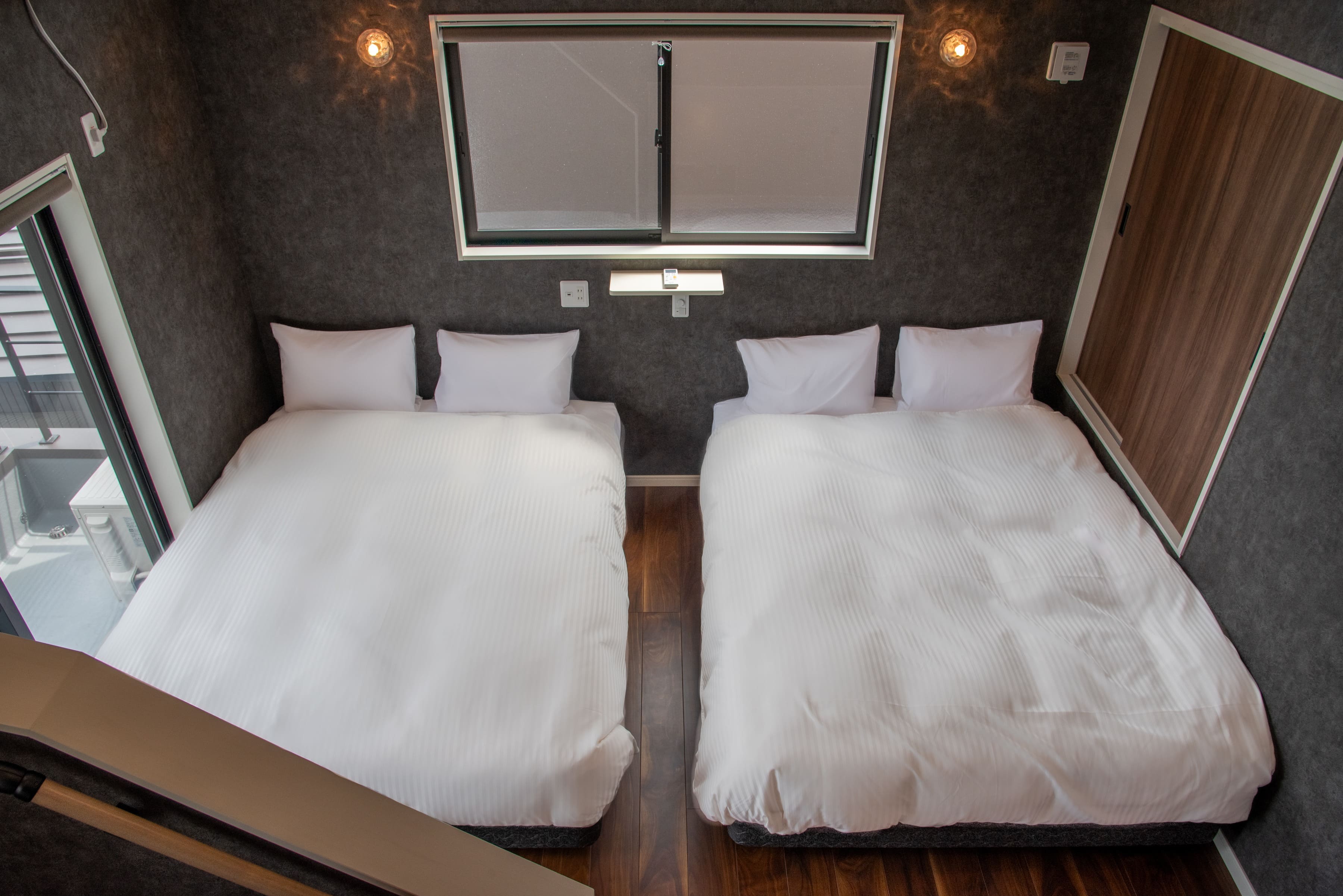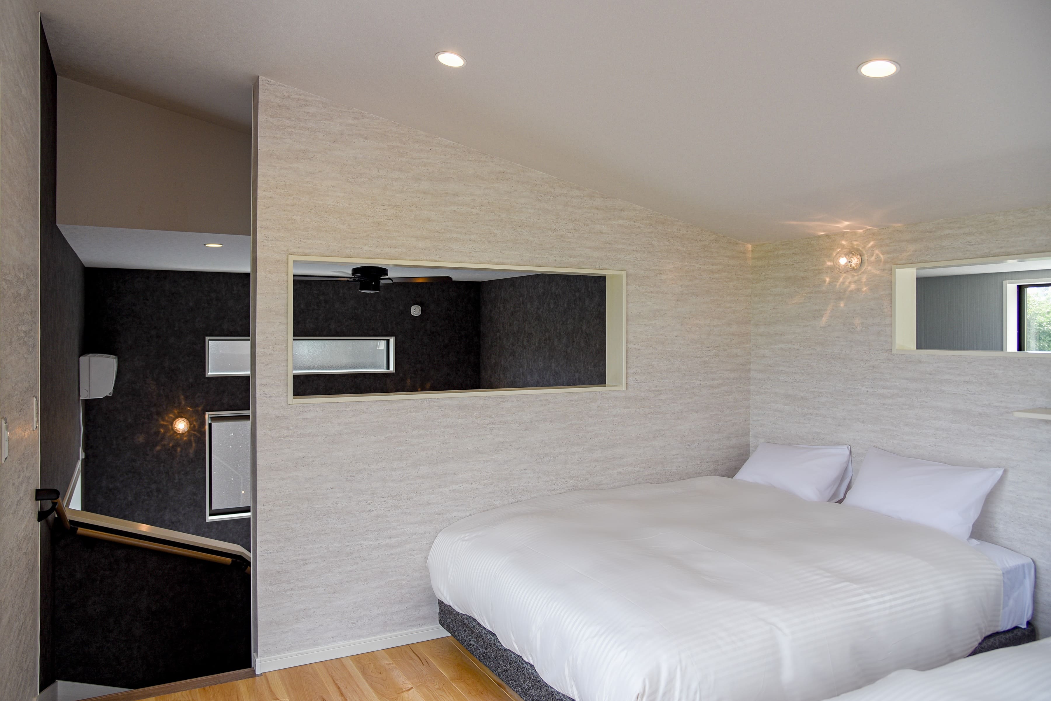 寝室はスキップフロアのモダンで落ち着いた雰囲気の下層フロアと、白を基調とした明るい上層フロア、お好みに合わせてご利用いただけます。