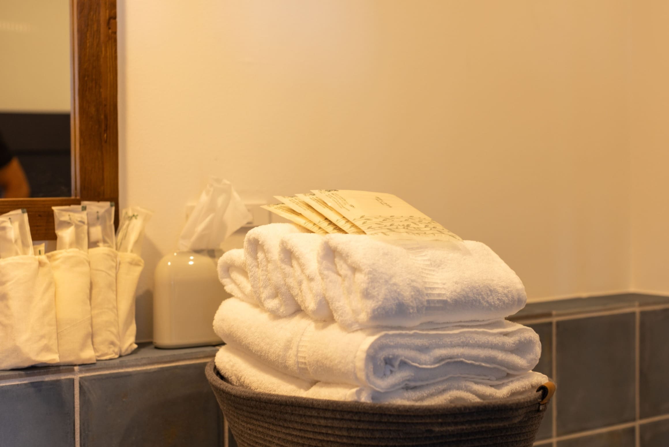 ジャグジー専用の清潔感あふれるスタイリッシュな更衣室も完備。高品質なアメニティも取り揃えています。