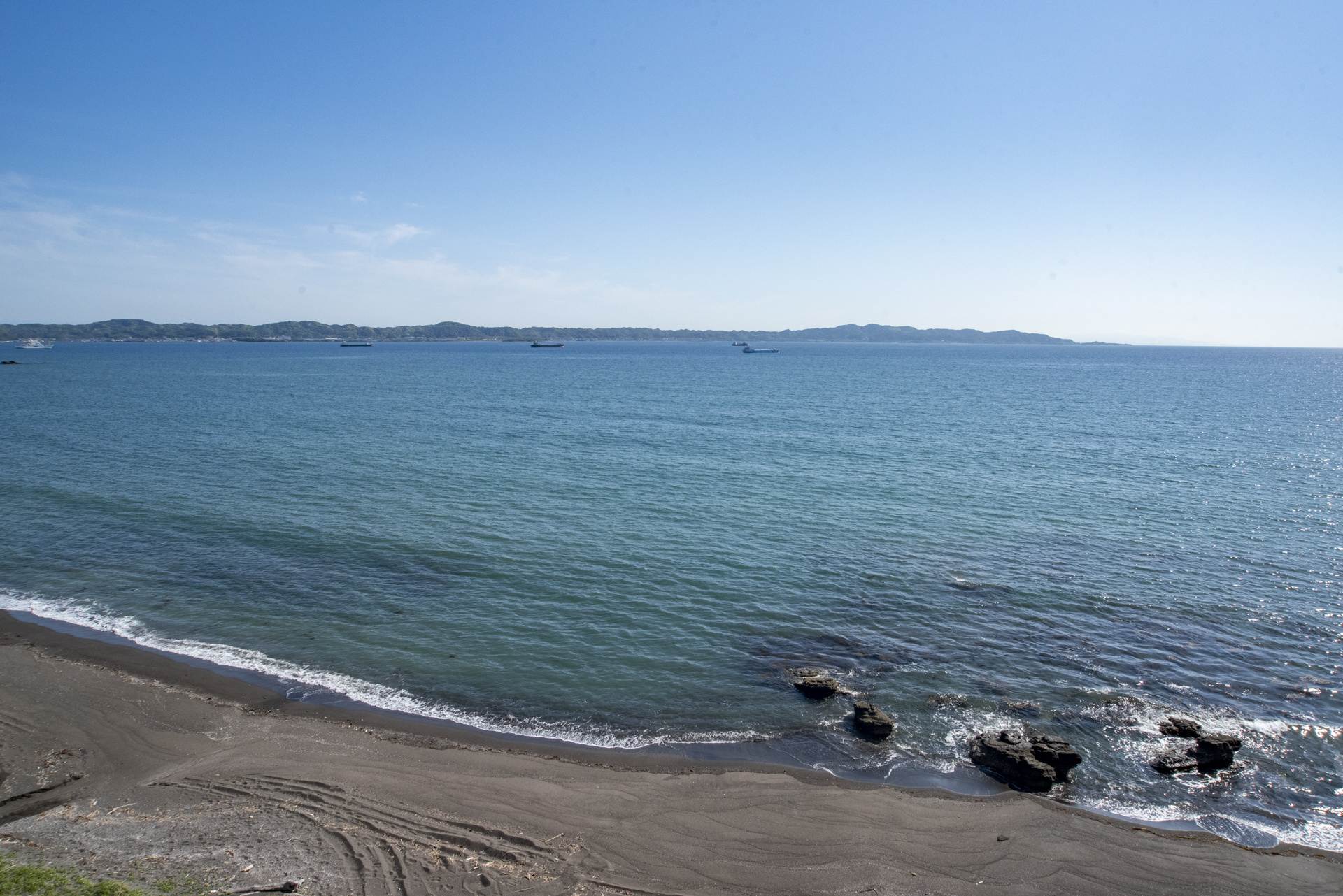 眼下に広がる海岸は、道路からの進入路がなく、静かで穏やかな砂浜が続きます。