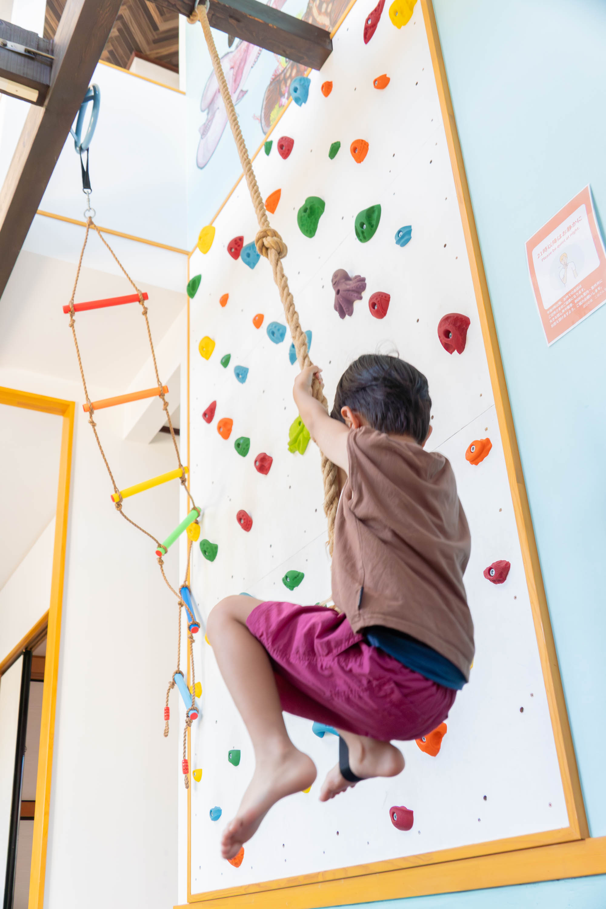 お部屋にボルダリングやターザンロープ・ハンモックがあるので小さなお子様連れのご家族にはもってこいの場所です。