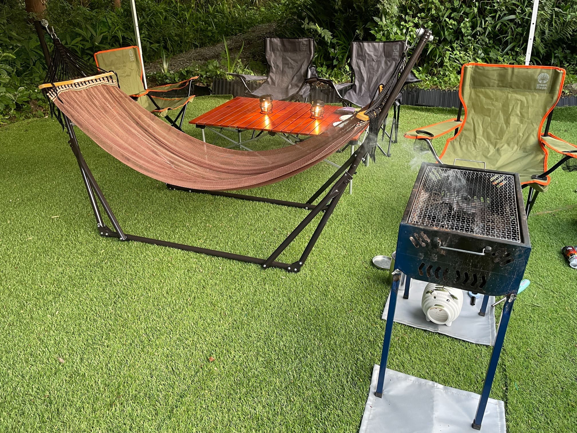 鍵を開けるとハンモックやBBQセットなどがありますので、必要に応じてご使用ください。