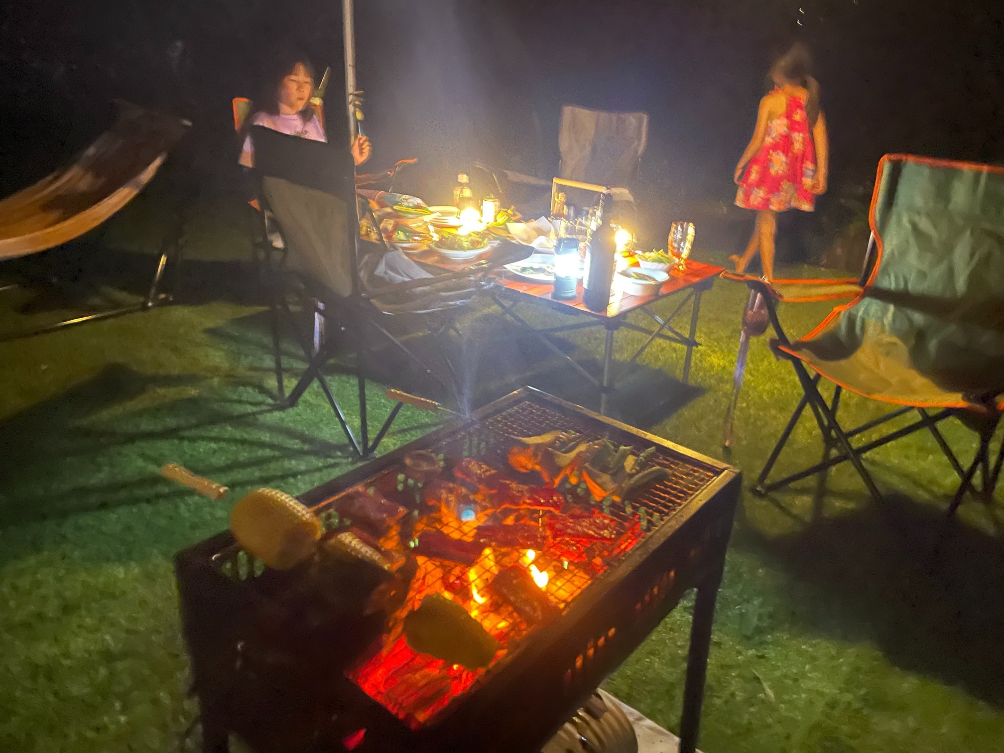 花火は手持ち花火のみでお願い致します。人工芝の上でやると溶けるので反対側の敷地でお願い致します。