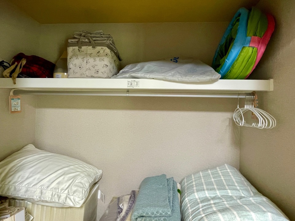 ※大人用の布団が3組クローゼットに収納されています。大人4名の場合は掛け布団のみご用意しているのでエアマットを膨らませてリビングにてご利用ください。