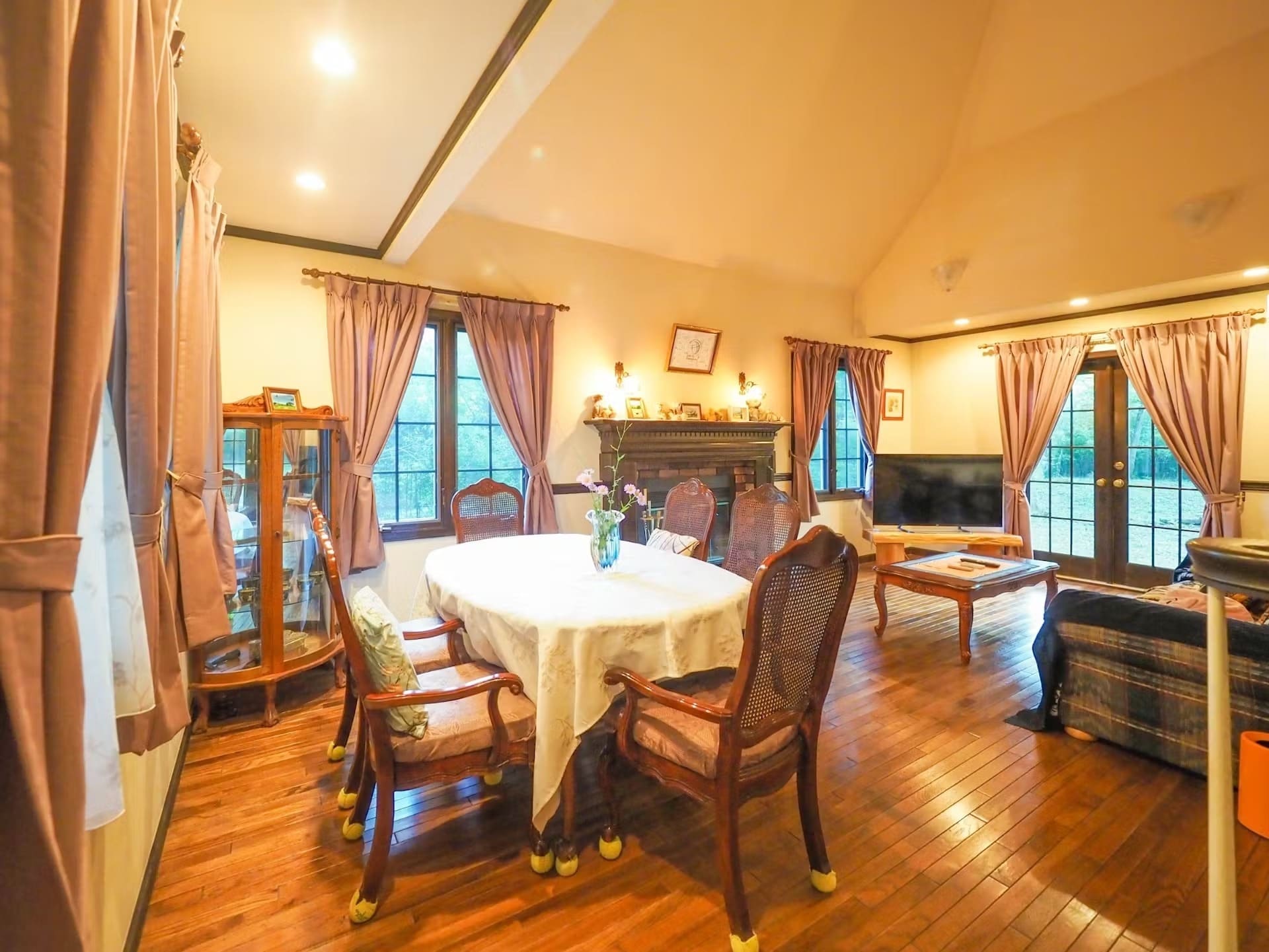 広いリビングとダイニングでくつろいでください、広いでのバーベキュー、暖炉でのくつろぎ、ご家族のだんらんに最適です。