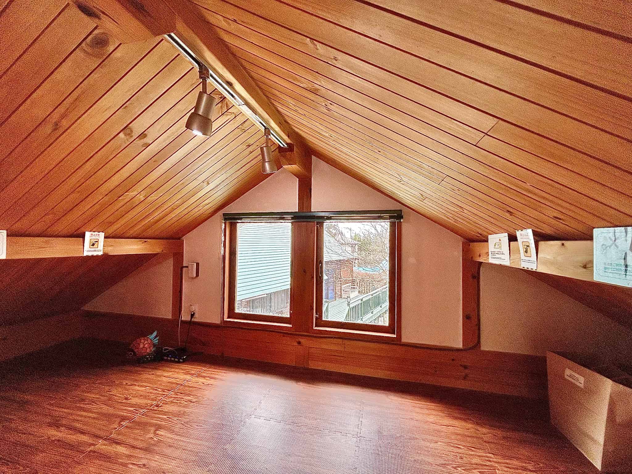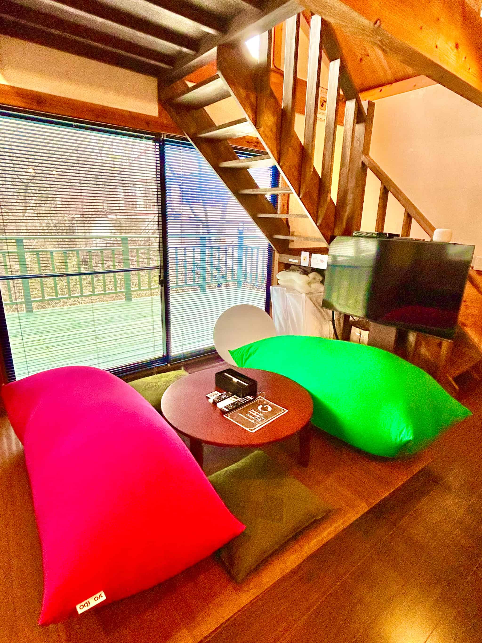 隠れ家感のあるロフトは、お子様に大人気。広い窓に映る那須の自然と眺めながらビーズクッションでゆったりお過ごしいただけます。