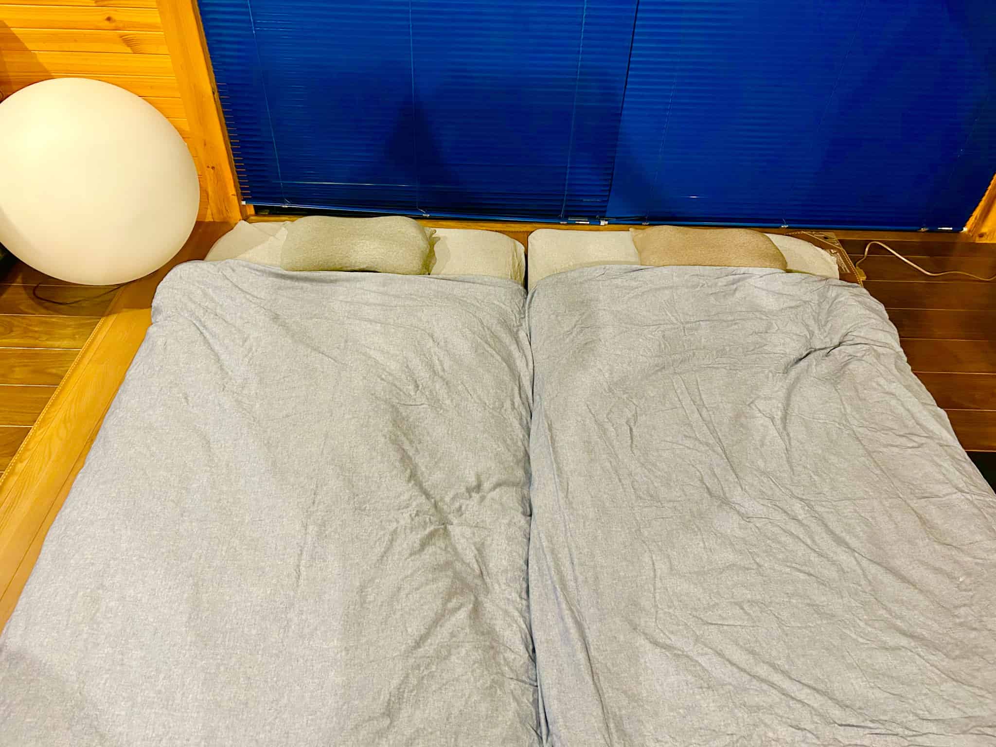 当施設では、シングルサイズ敷布団2枚、ダブルサイズ敷布団2枚をご用意しております。