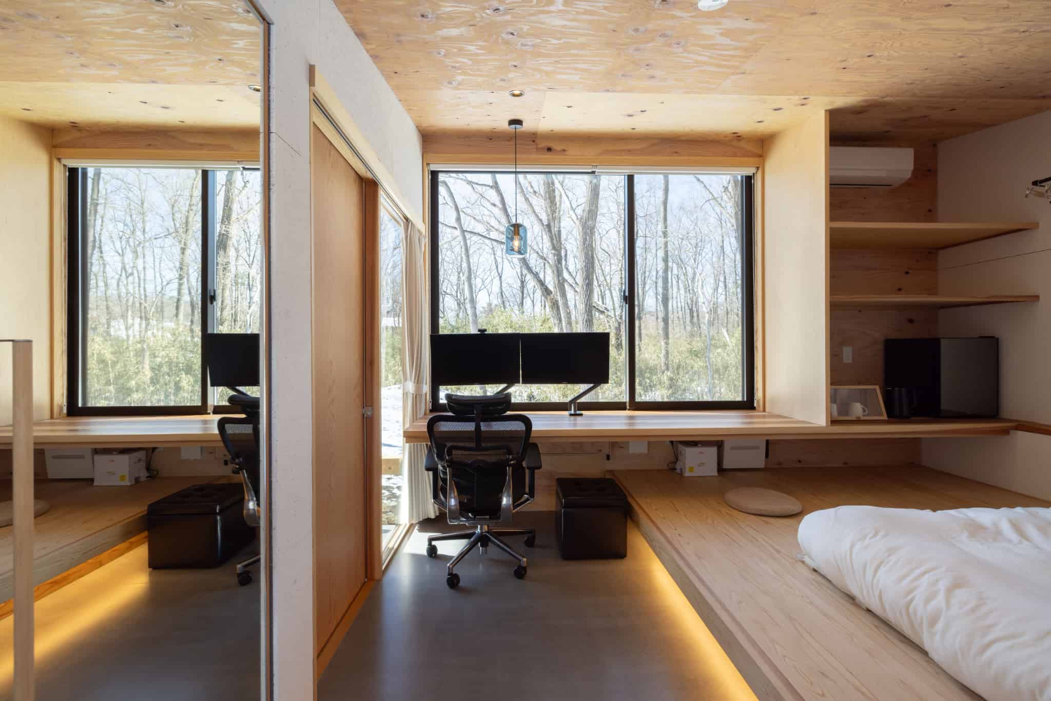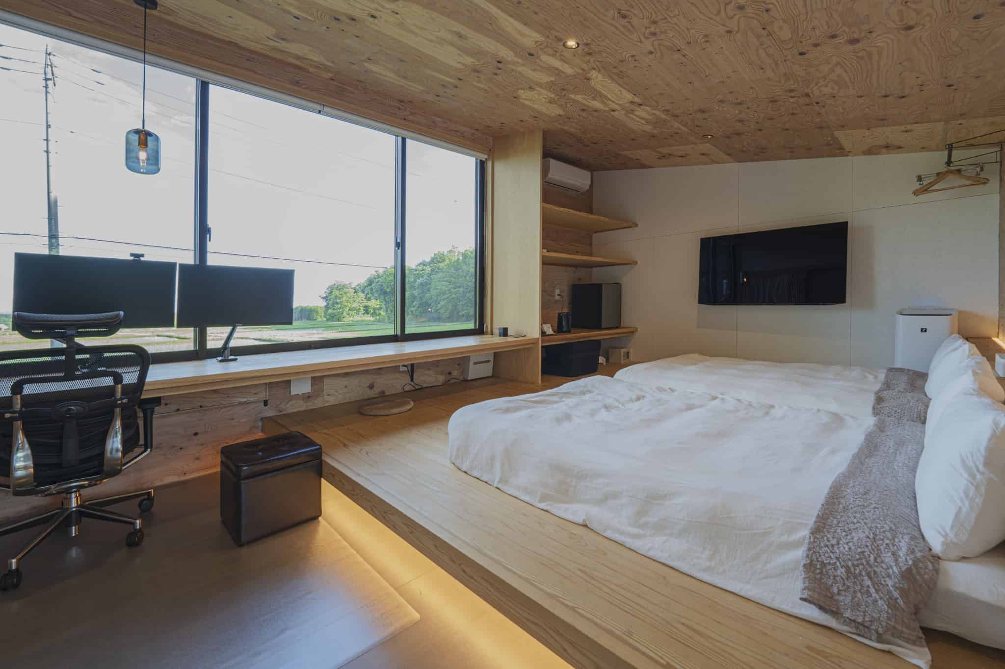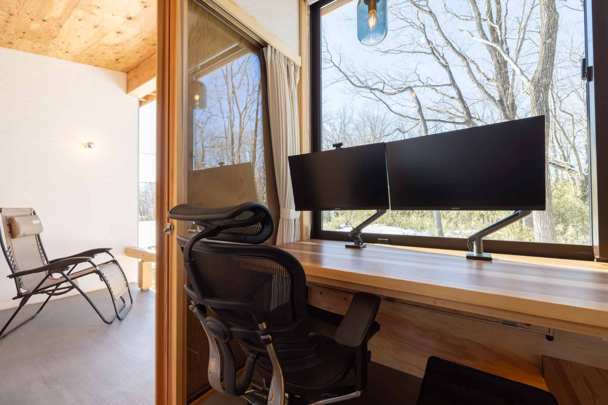 森deワーケなすっぽが他の宿泊施設と一線を画す理由は、その本格的なワークスペースにあります。各部屋には27インチの高解像度マルチディスプレイやエルゴヒューマンの高級チェア、広々とした木製デスクが備わっており、快適な作業環境が整っています。高速Wi-Fiと有線LANが完備されているため、ビデオ会議や大容量データのやり取りもスムーズに行えます。ビジネスの生産性を高めるために最適化された空間で、個人の集中力を最大限に引き出すことができます。