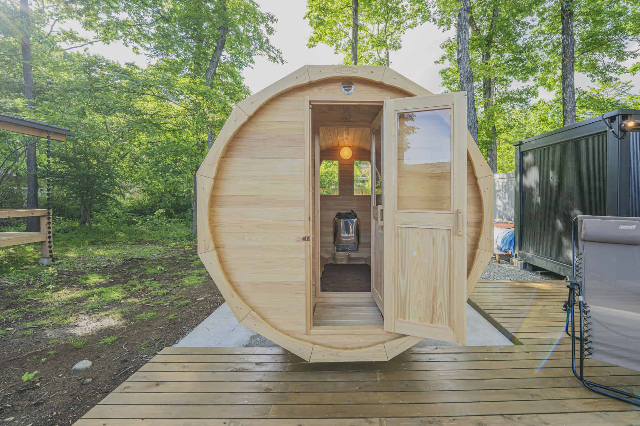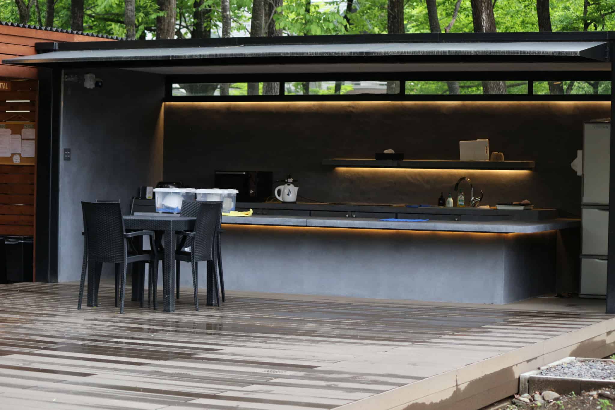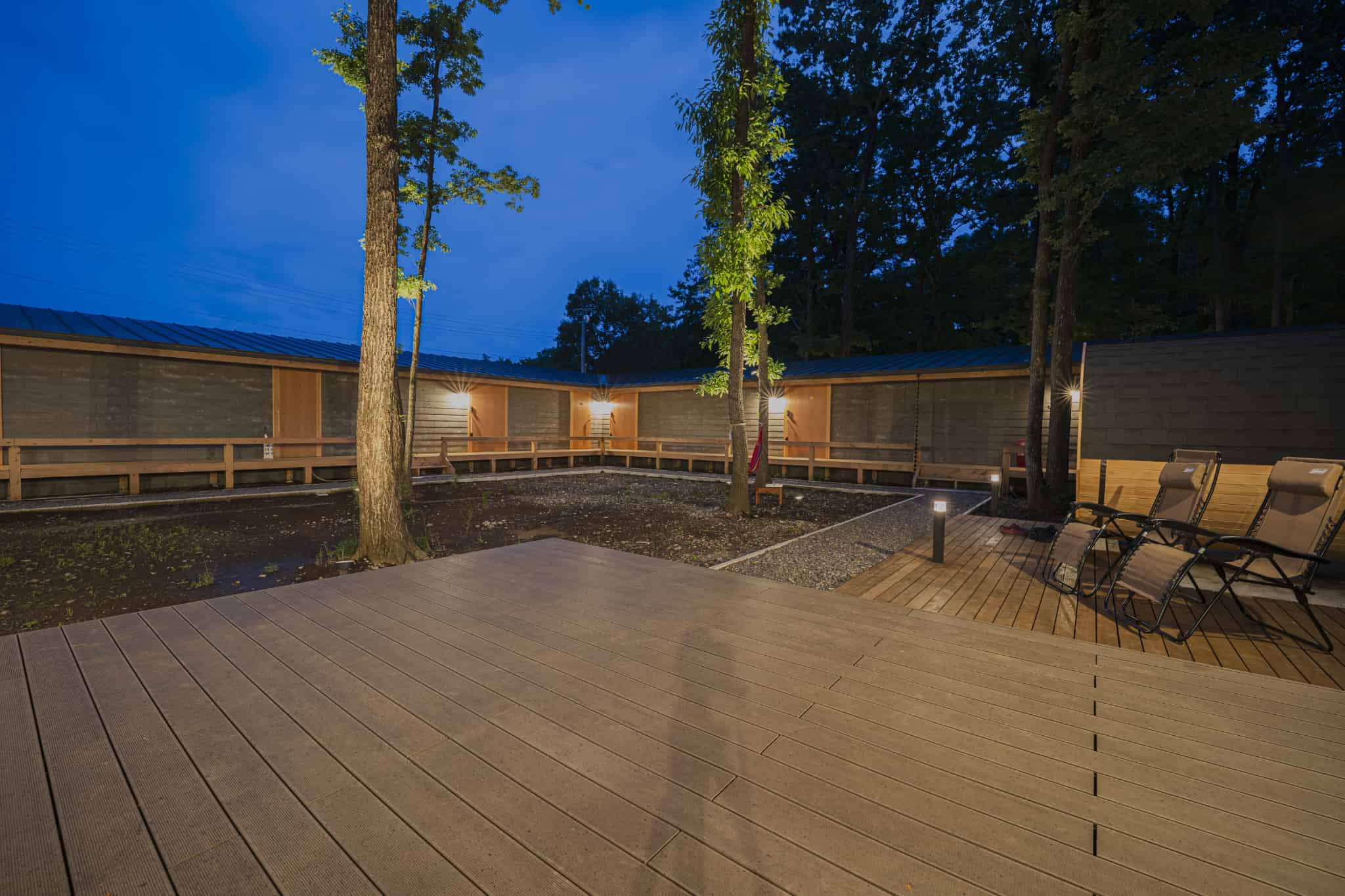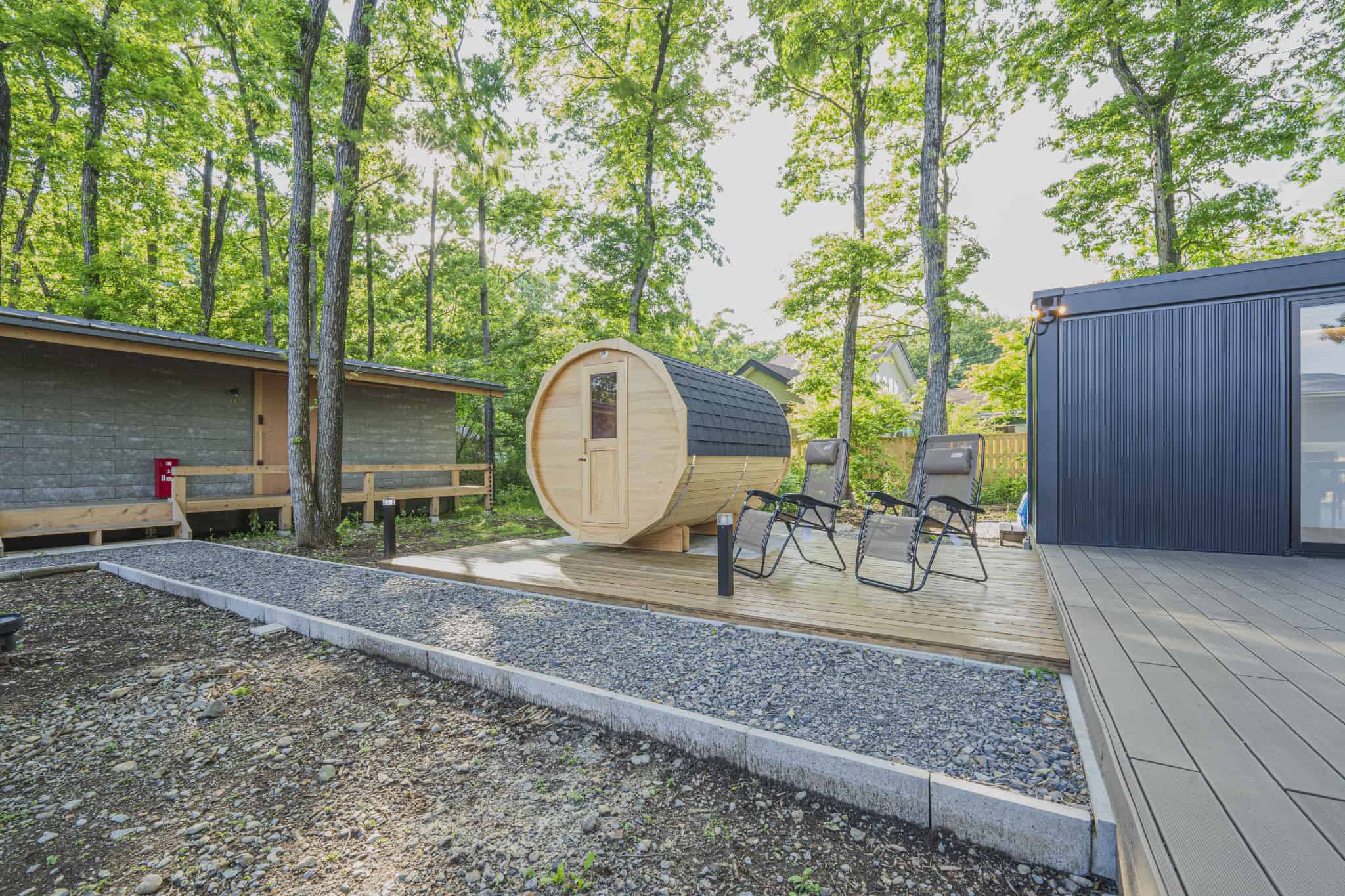 森deワーケなすっぽでは、ただのワークスペースだけではなく、リラクゼーションのための設備も充実しています。施設内には、森林に囲まれたバレルサウナが設置されており、仕事の合間や1日の終わりに自然の中で心と体をリフレッシュすることができます。サウナの後には、広々としたテラスでBBQを楽しんだり、キャンプファイヤーを囲んでリラックスしたひとときを過ごすことができます。このプライベートな空間が、仕事の疲れを癒し、明日への活力を生み出します。