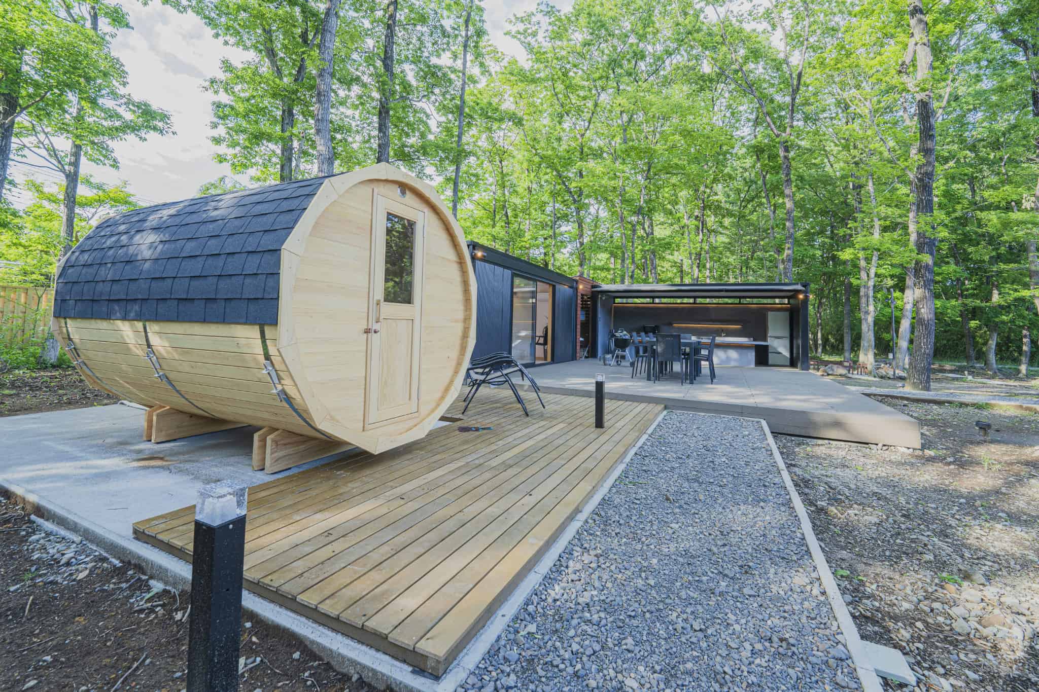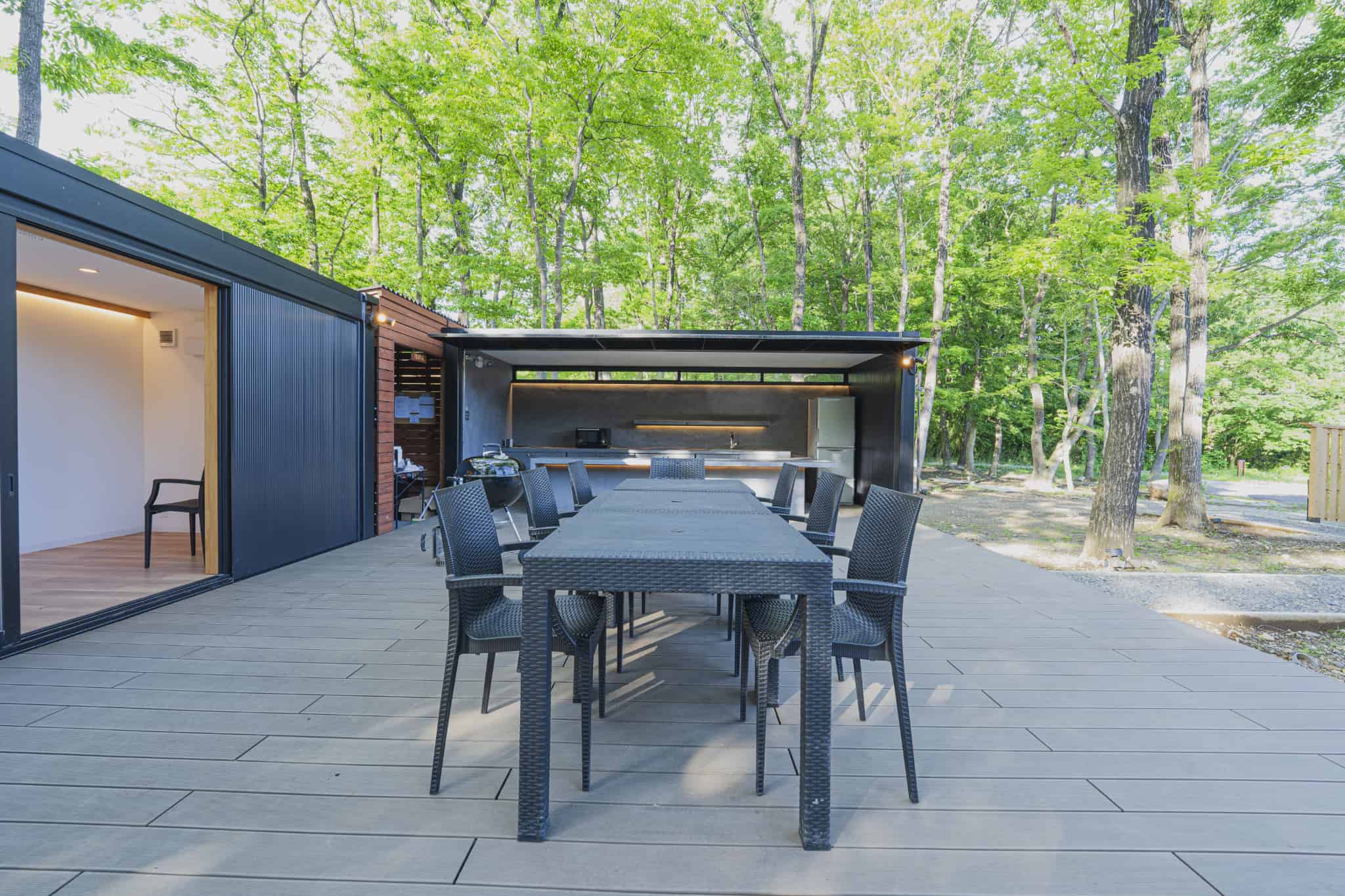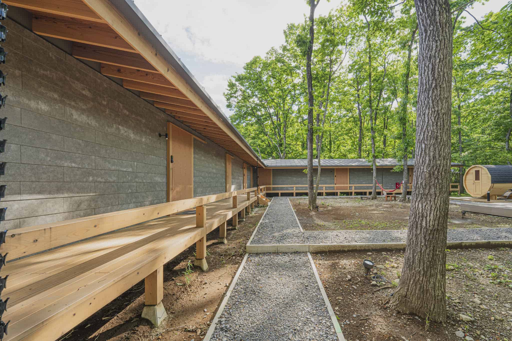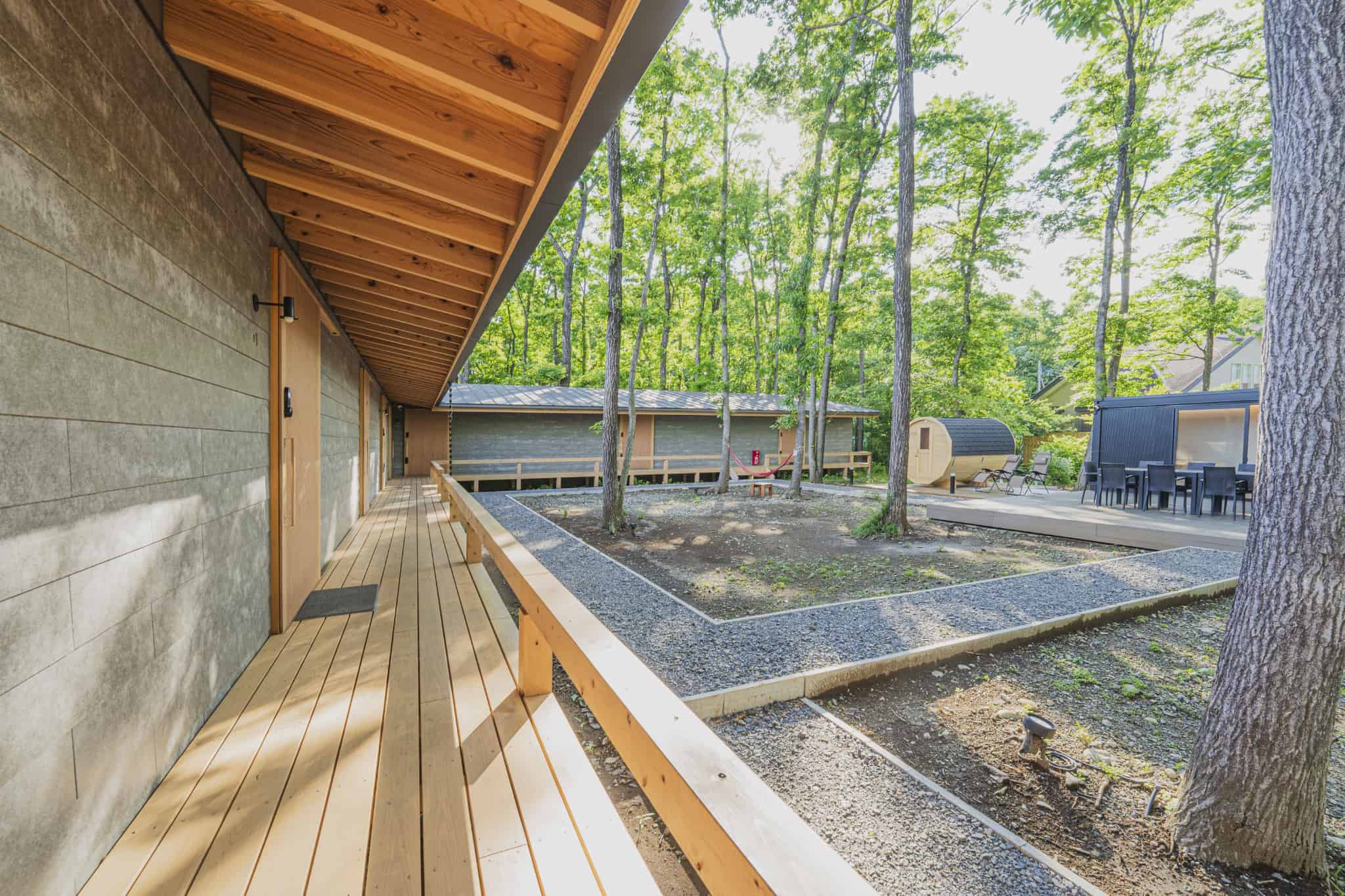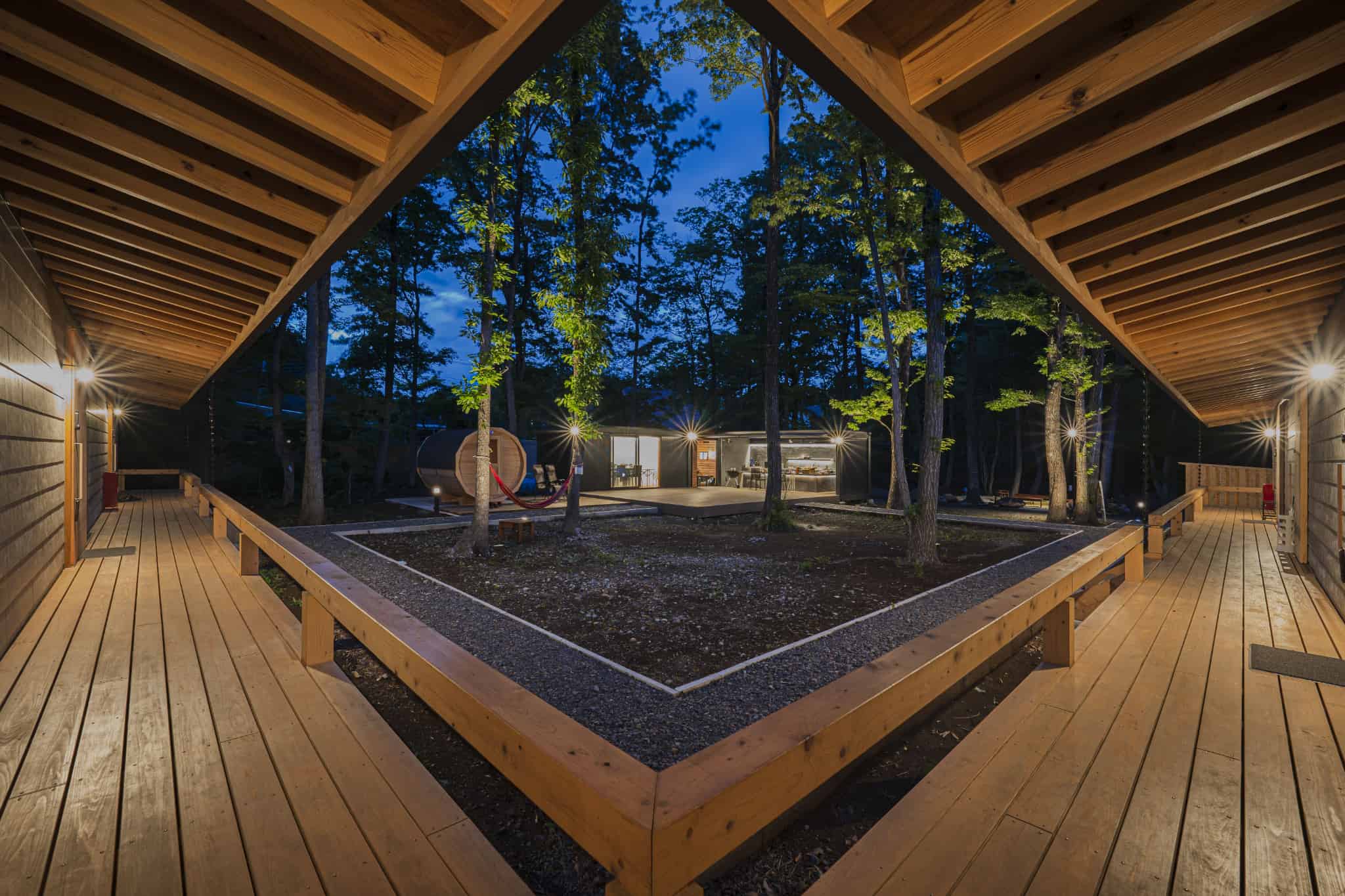 2023年OPEN、那須の森で叶える贅沢な隠れ家的存在、ホテルライクな佇まい、森のバレルサウナ、BBQ、焚き火、観光の中心地