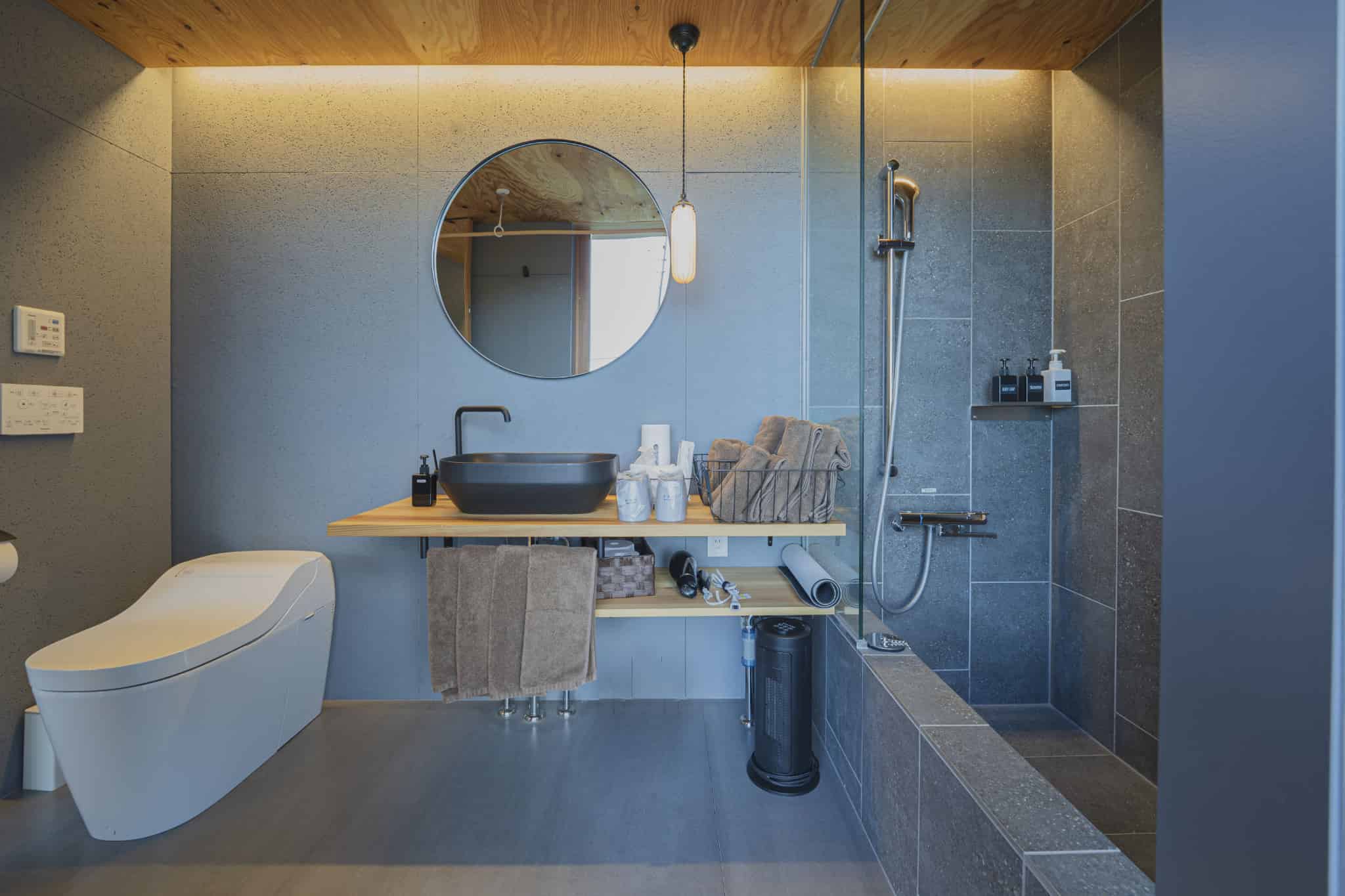 ・バスタオル&フェイスタオル(泊数✕人数分)、室内スリッパ、屋外サンダル1足(テラス等)、ハンガー、コップ、電動コーヒーミルとコーヒー豆、ペットボトルのお水、懐中電灯