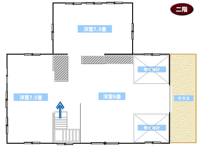 「桜」棟は2階が3部屋に分かれる2階建て3DKです。