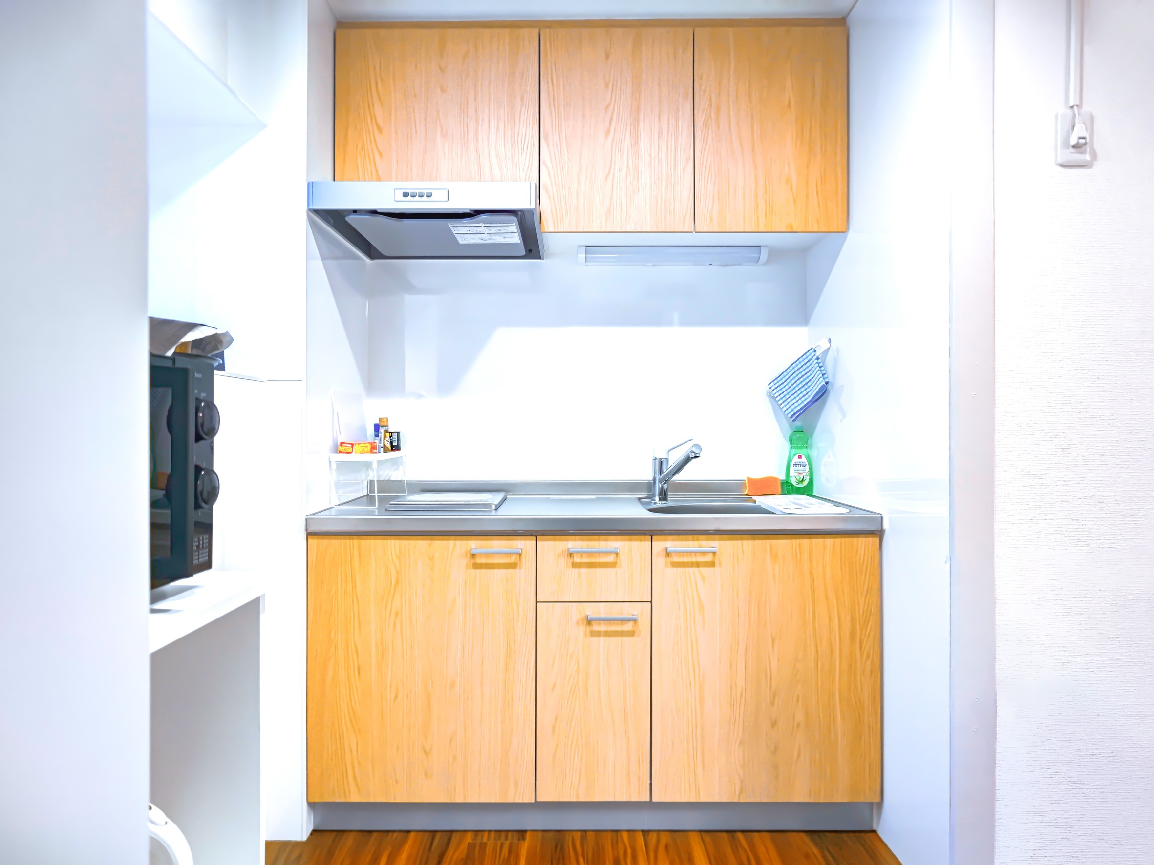 洗濯機・ガス乾燥機のほか、アイロン・アイロン台も完備。中長期のご滞在にも十分対応できます。