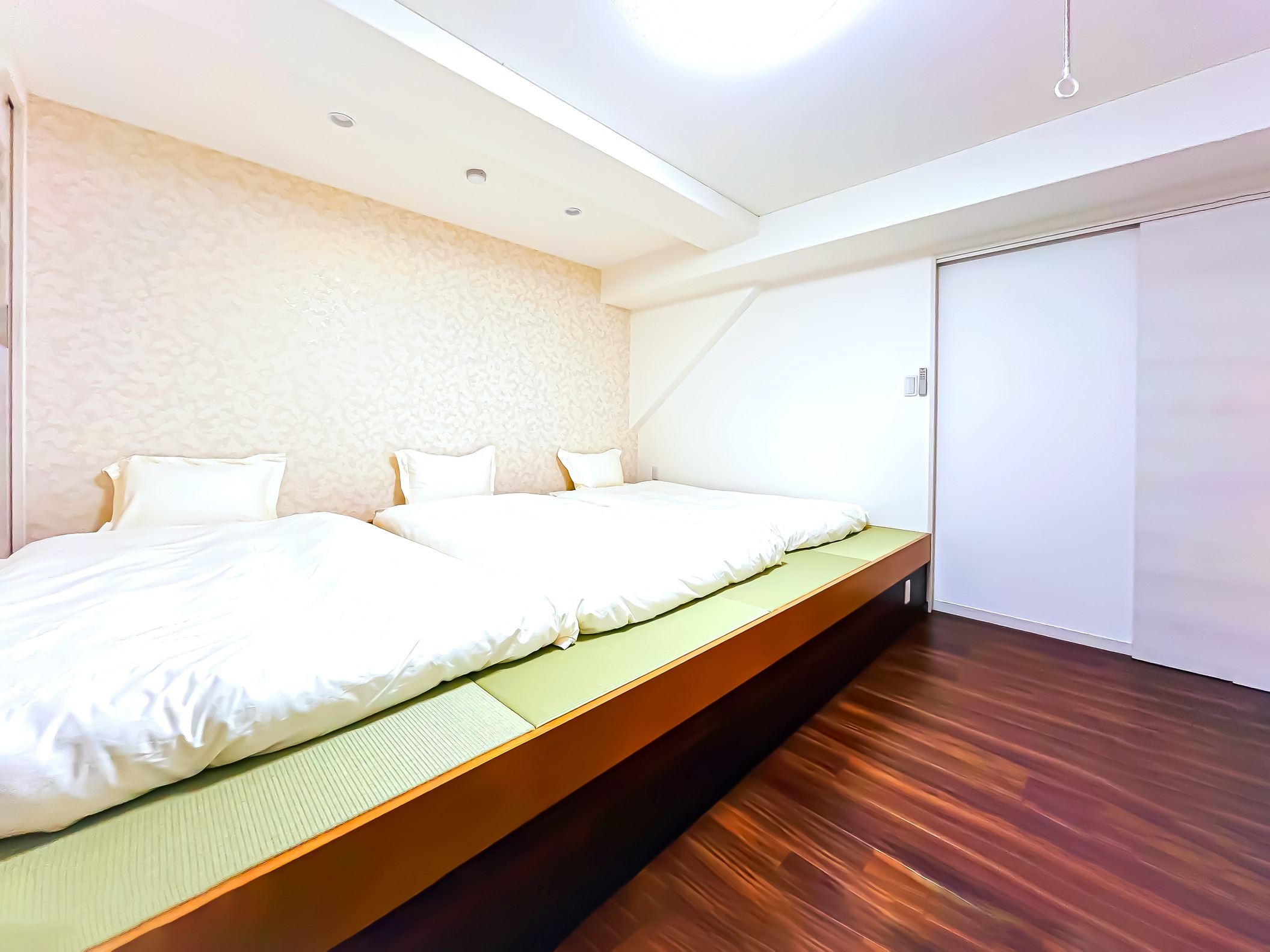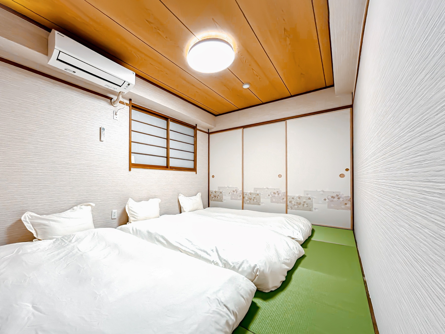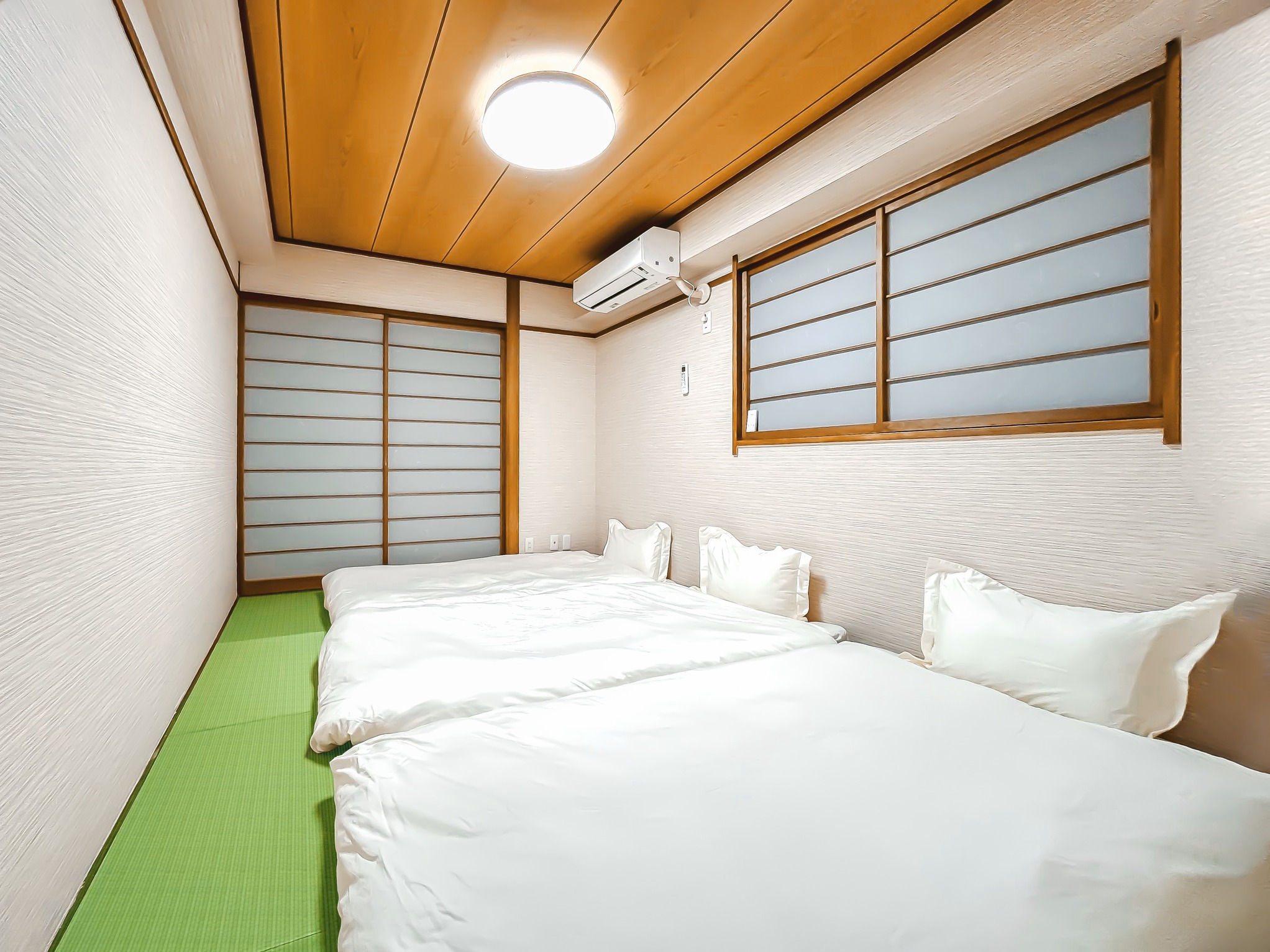 2階には、もう一部屋の和室をご用意。布団での就寝に加え、押し入れ収納とハンガーを備えているため、お荷物の整理や長期滞在にも対応しています。