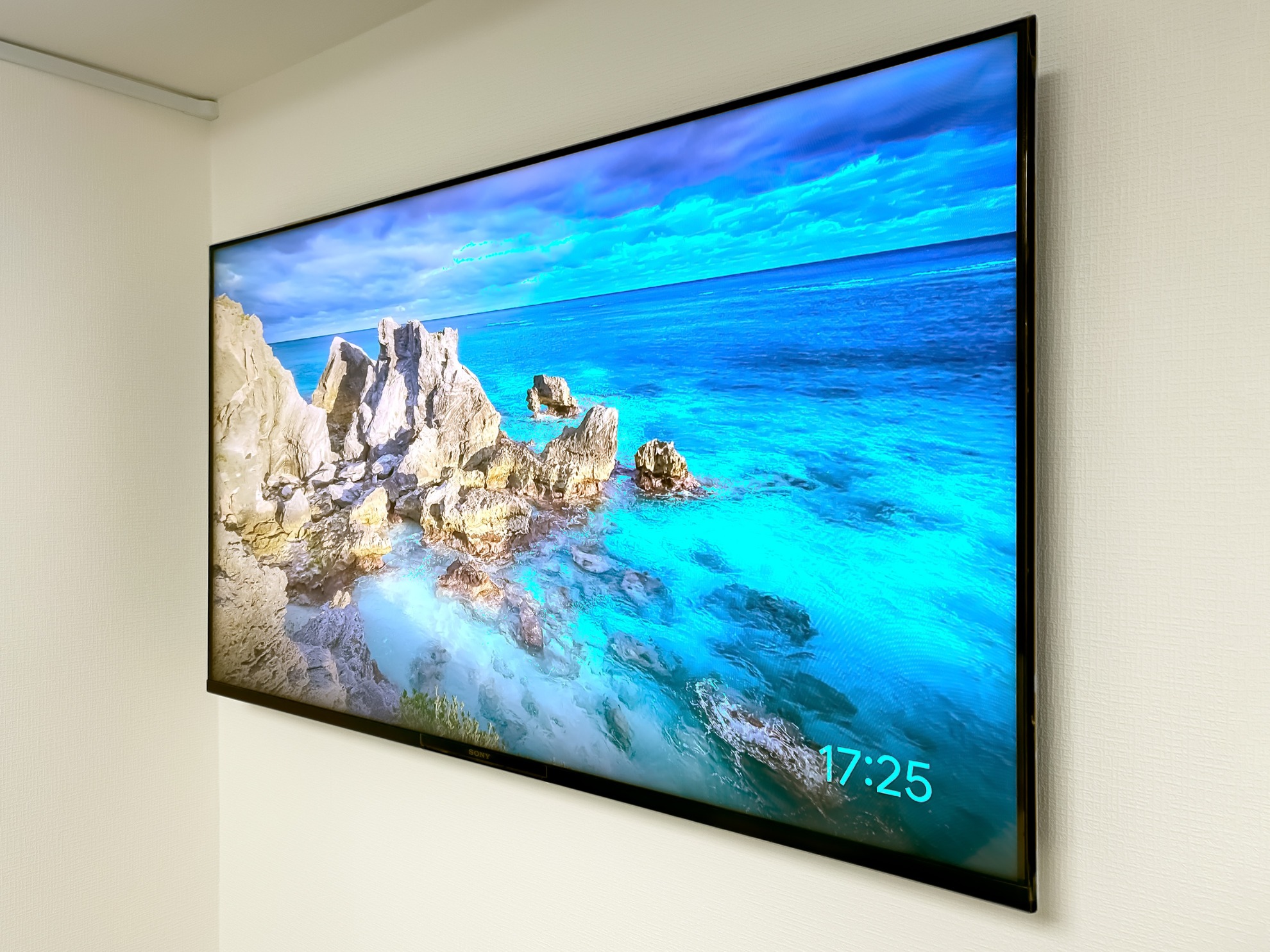 1階は、SONY製50インチの壁掛け4Kテレビを設置してます。