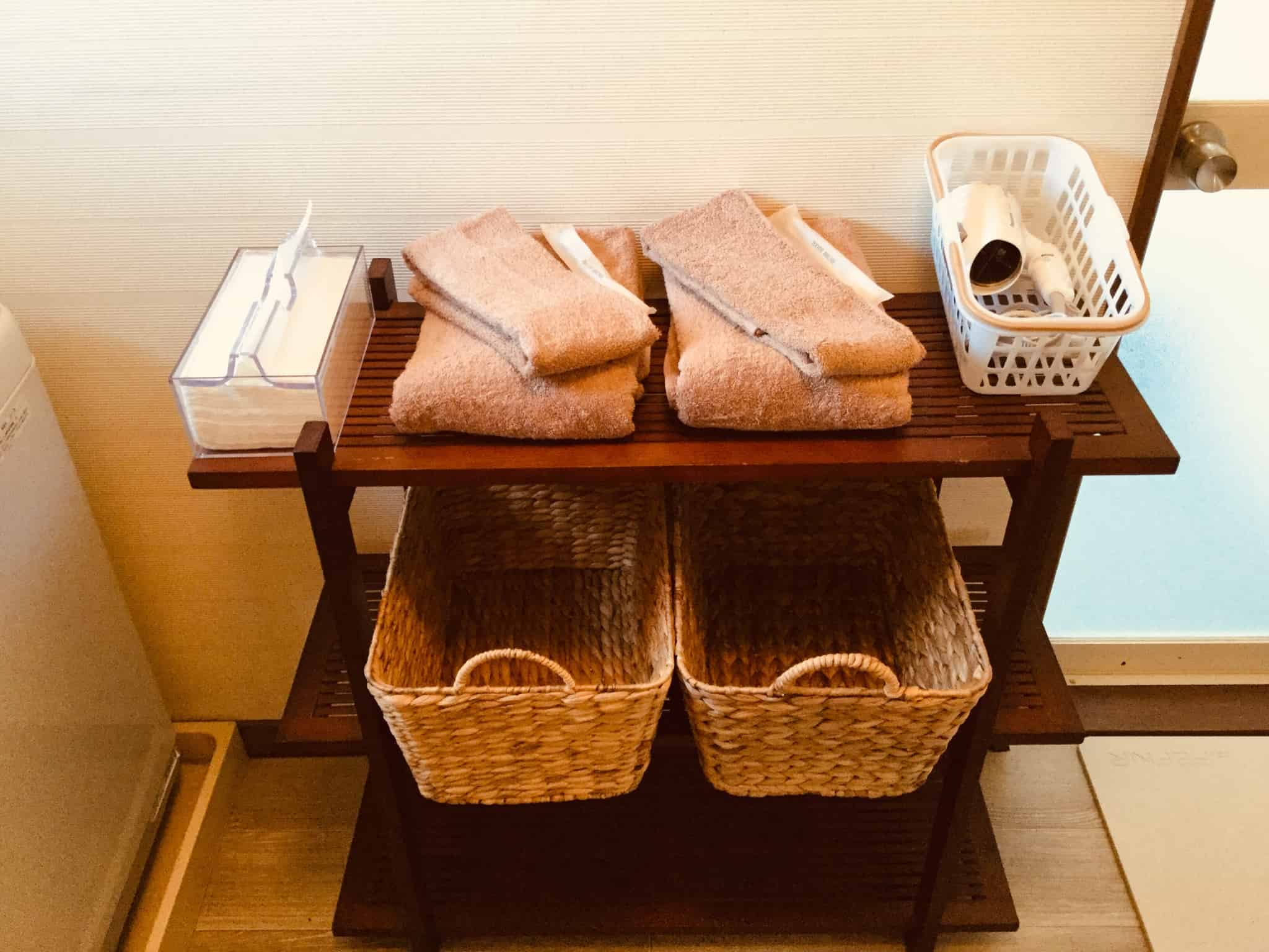 お一人につきバスタオル1枚、フェイスタオル1枚、使い捨て歯ブラシ1本ご用意しています。