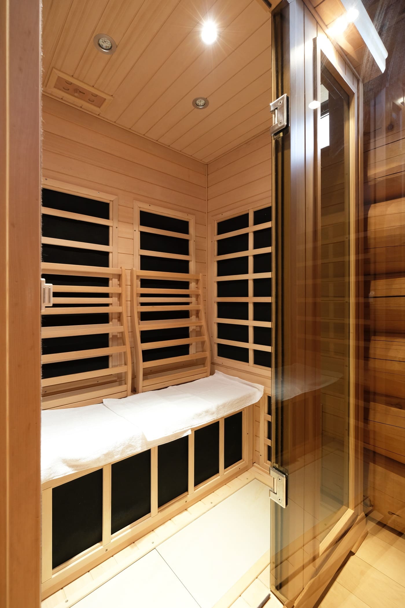 大浴場、露天風呂、水風呂、サウナが付いた閑静な温泉です。