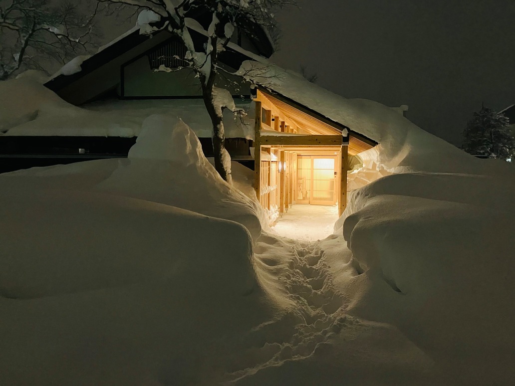 冬期間にお車でお越しの場合は必ず装備をしっかり整えてお越しください。当館まで上がれない場合は赤倉温泉入り口の有料駐車場をご利用いただいております。