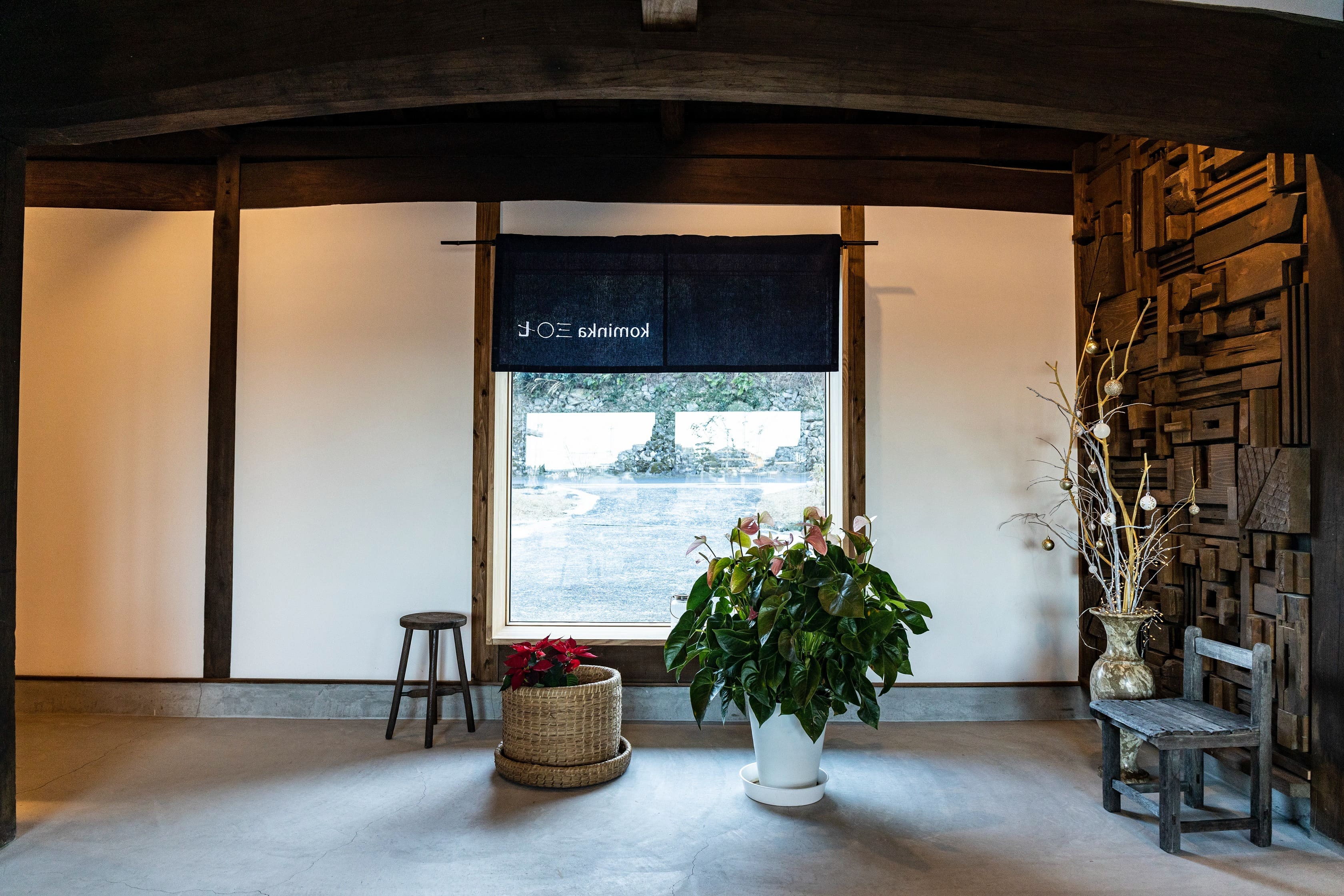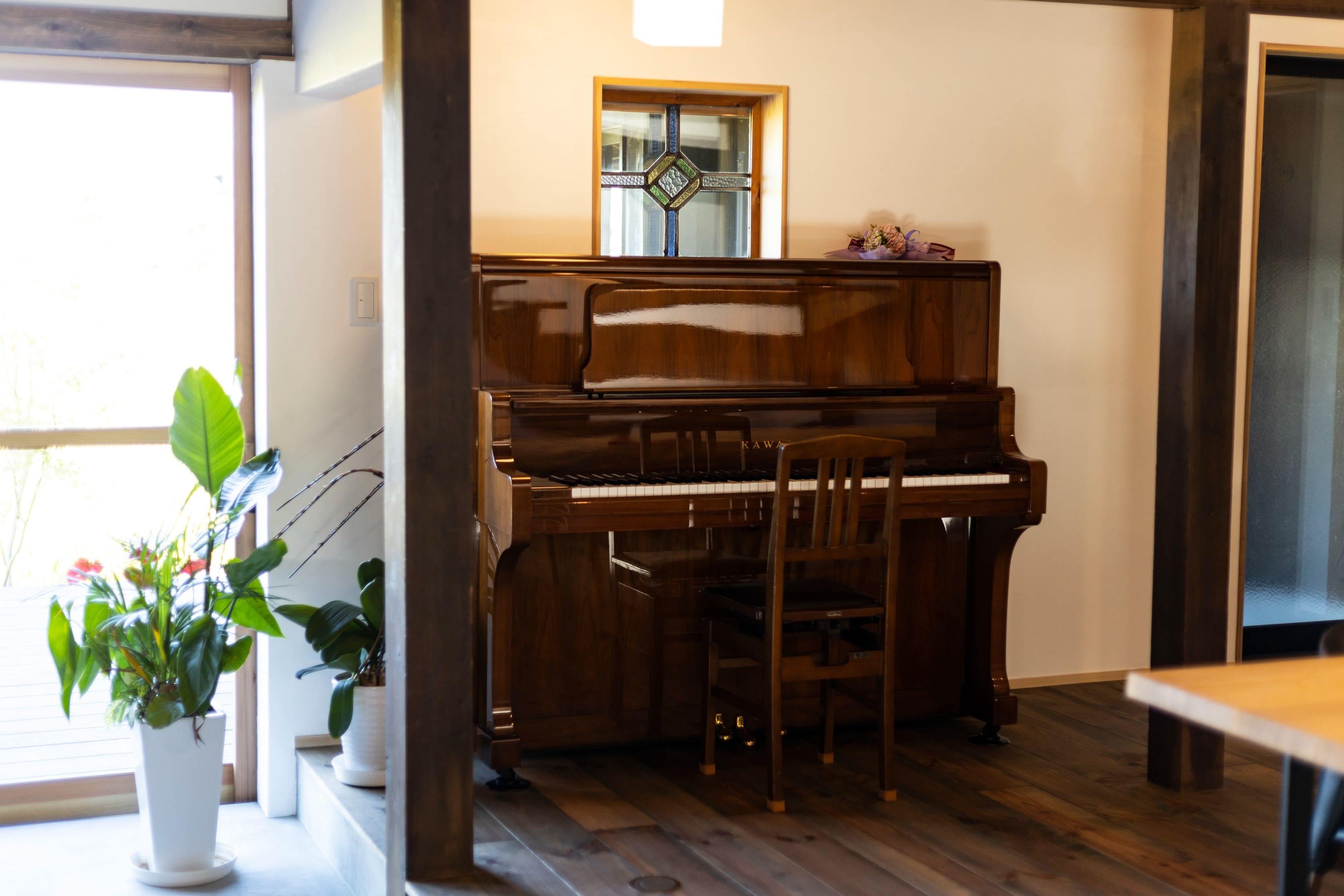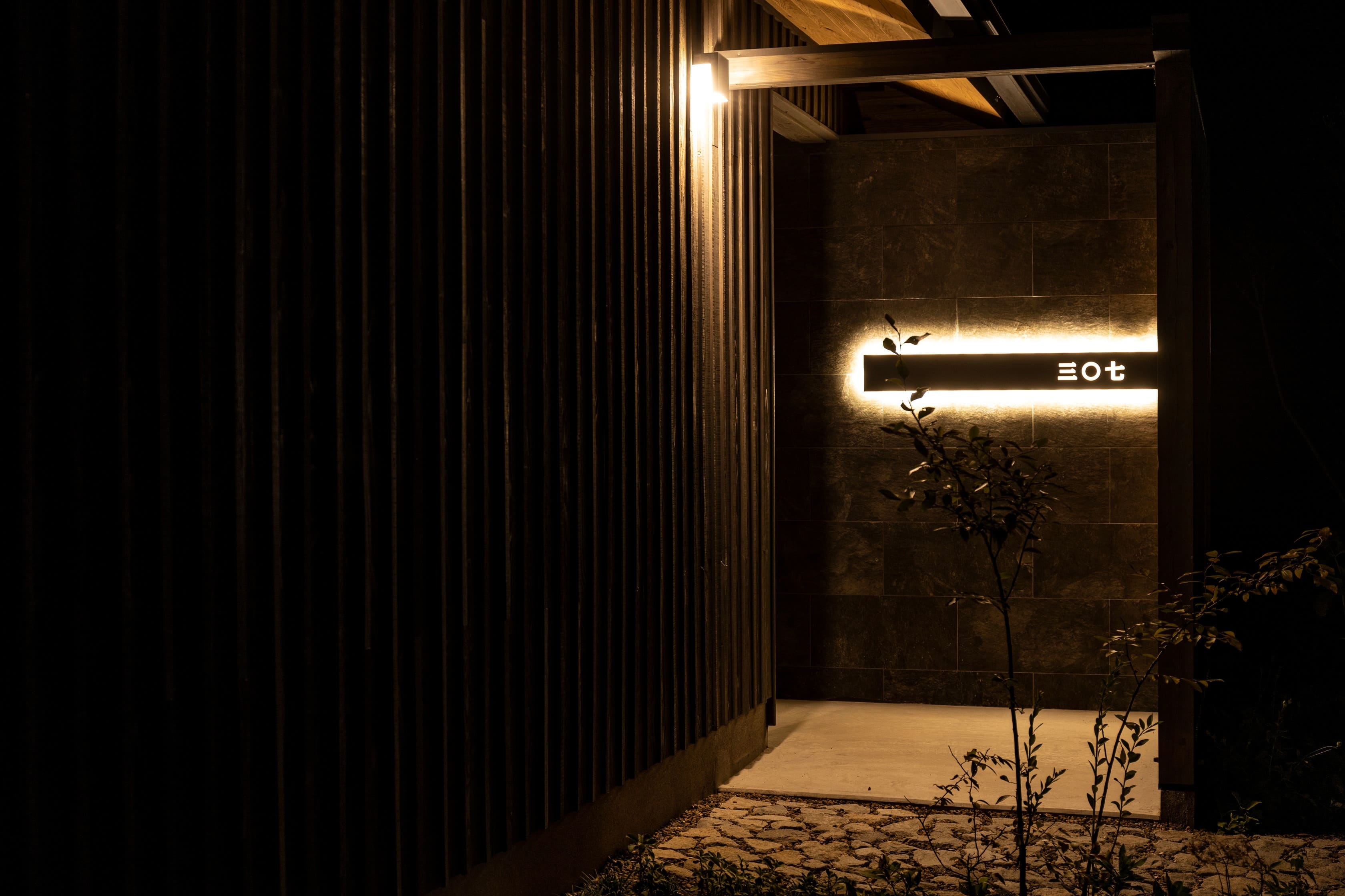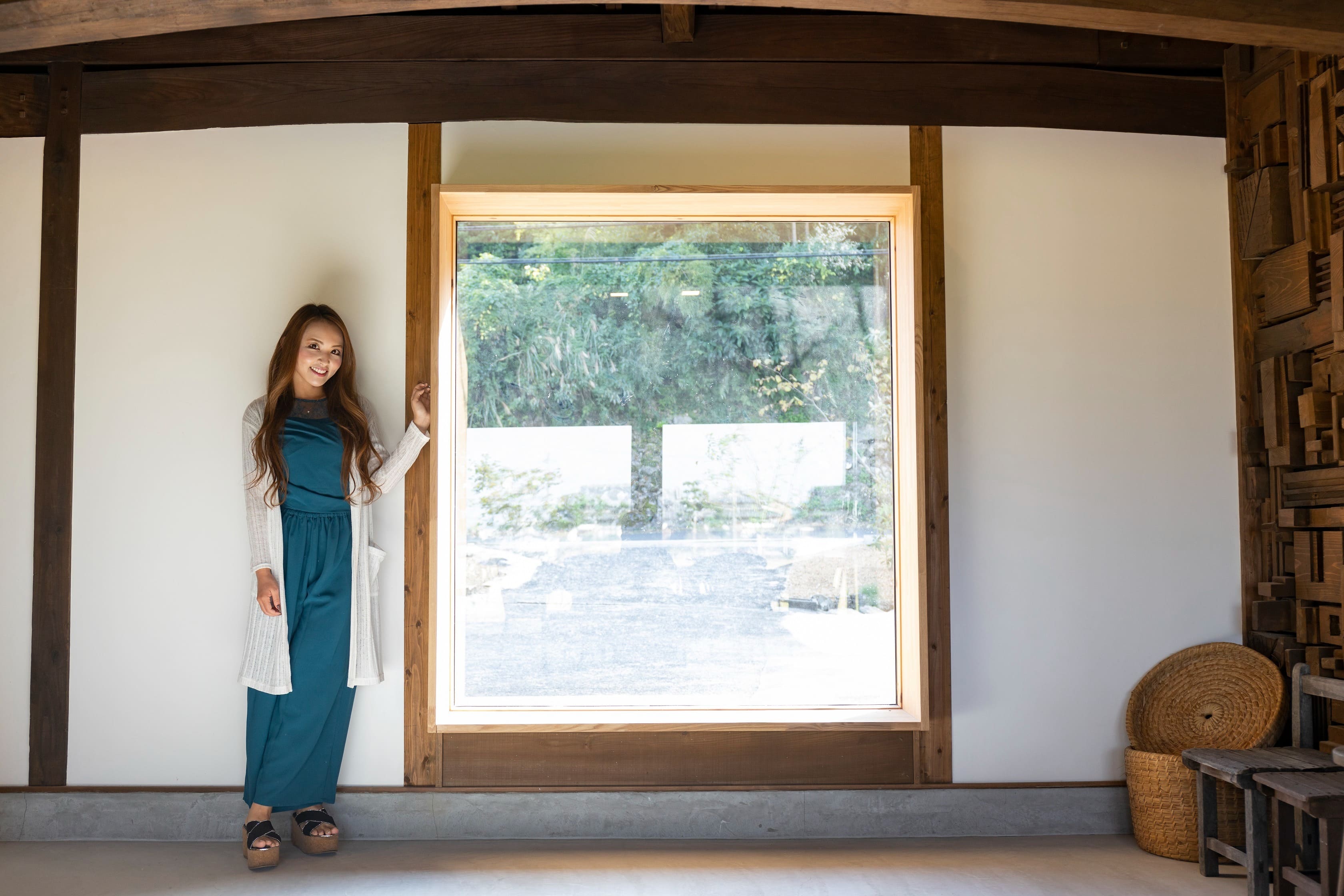 玄関から入ると土間が広がっており、右側に和室 細長い掘りごたつ式のテーブル(5人掛け)・左側にキッチン(8人利用できるテーブル) 2階が寝室 別棟に洗面所・露天風呂・BBQコーナー 1階から大きな窓がありウッドデッキが!!その先に長閑な田園風景が ウッドデッキ左隣にプライベートサウナ完備