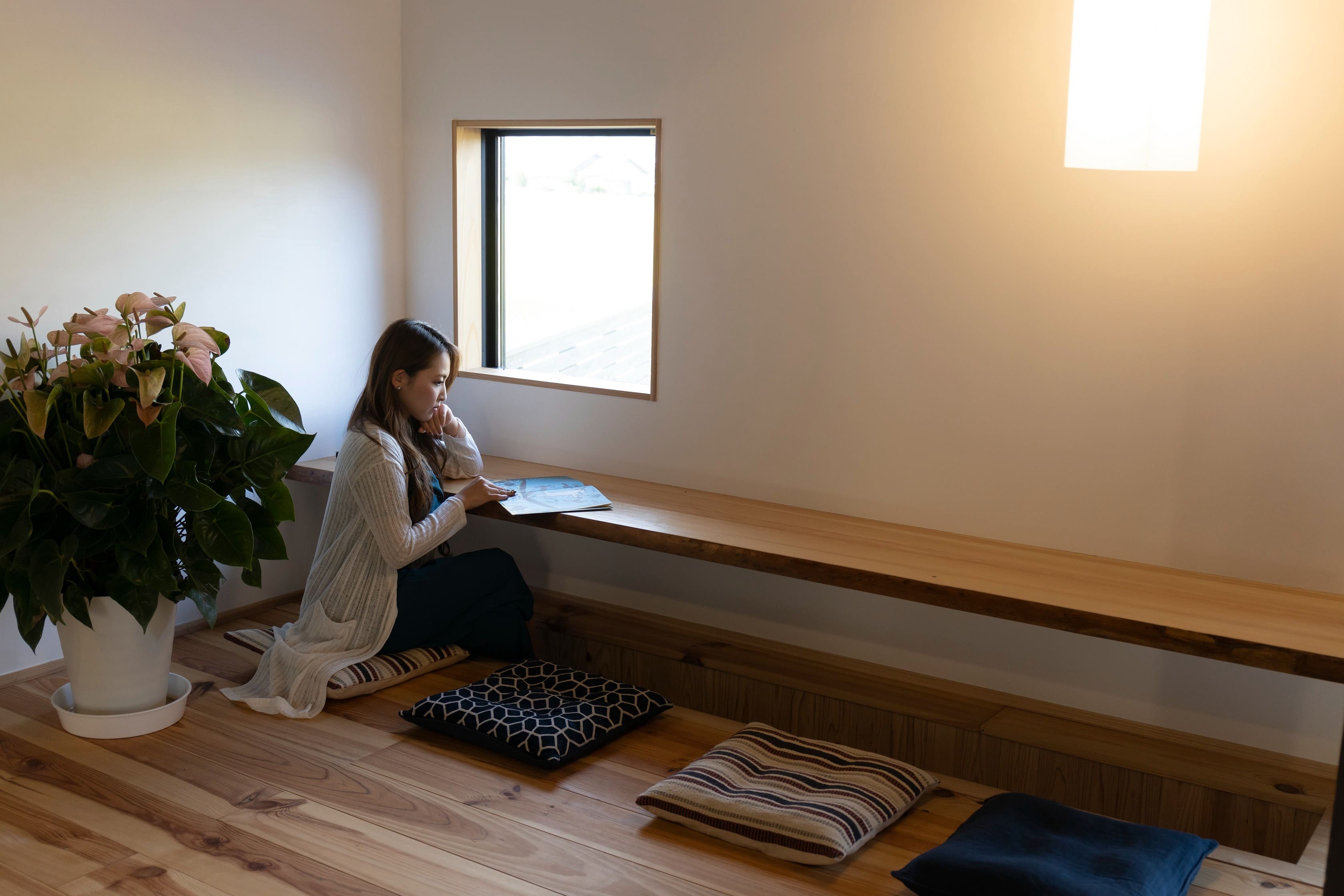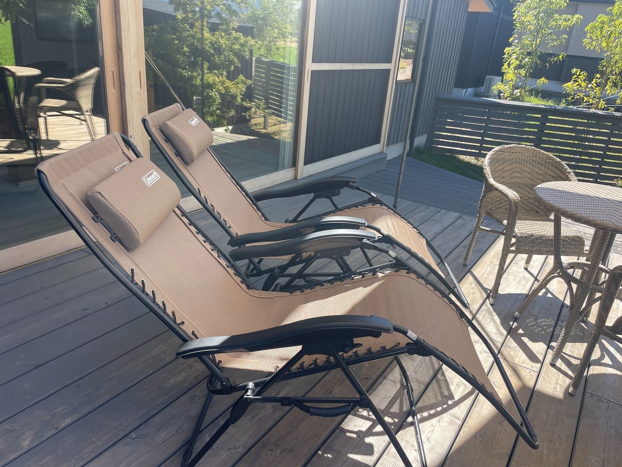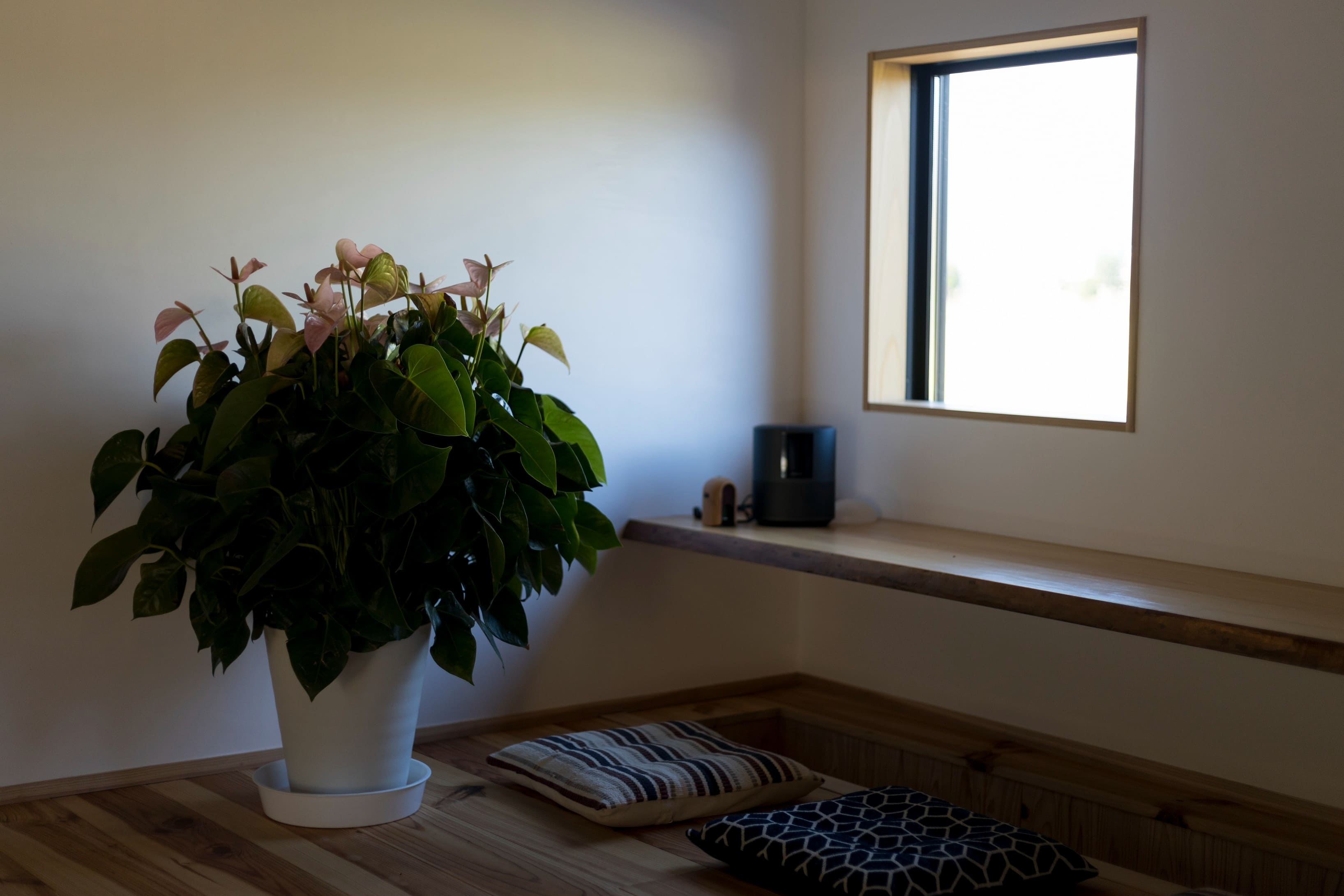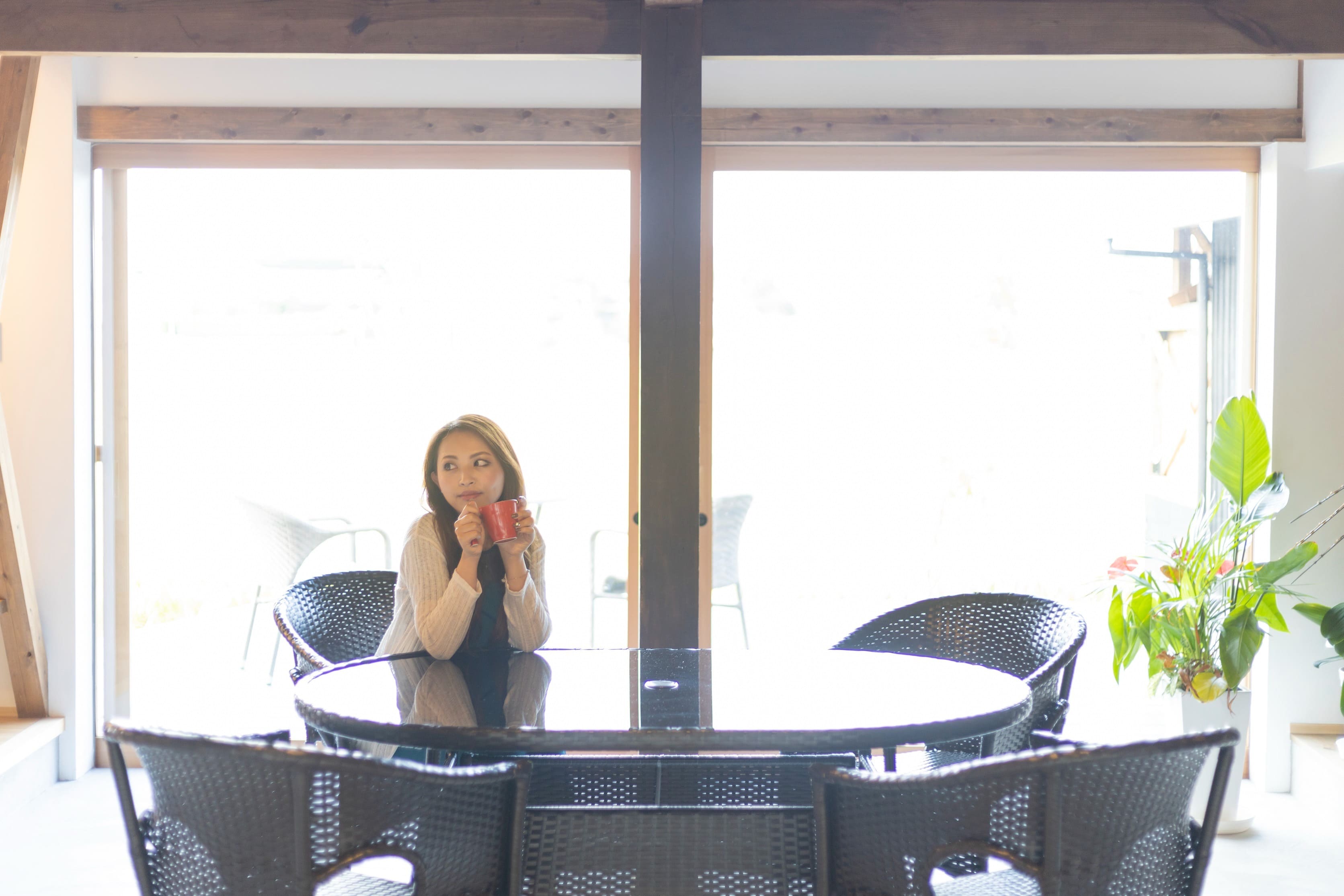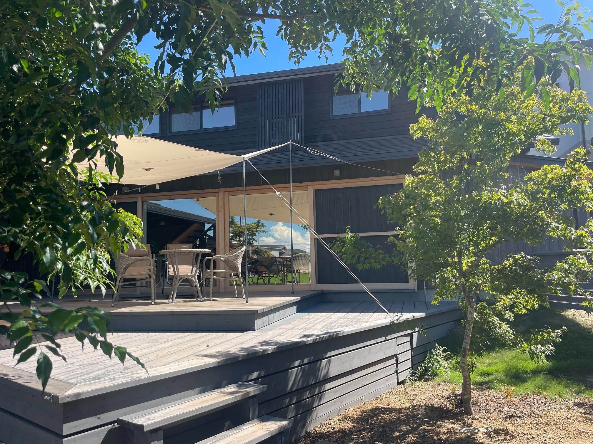 玄関から入ると土間が広がっており、右側に和室 細長い掘りごたつ式のテーブル(5人掛け)・左側にキッチン(8人利用できるテーブル) 2階が寝室 別棟に洗面所・露天風呂・BBQコーナー 1階から大きな窓がありウッドデッキが!!その先に長閑な田園風景が ウッドデッキ左隣にプライベートサウナ完備