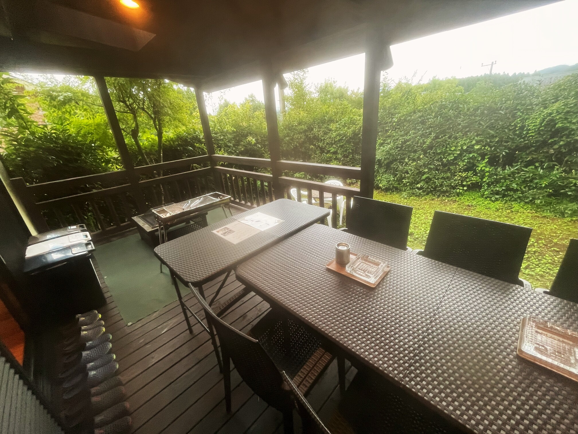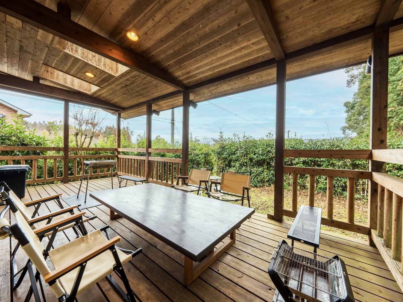 ※雨の日でも屋根付きテラスでBBQが楽しめます。