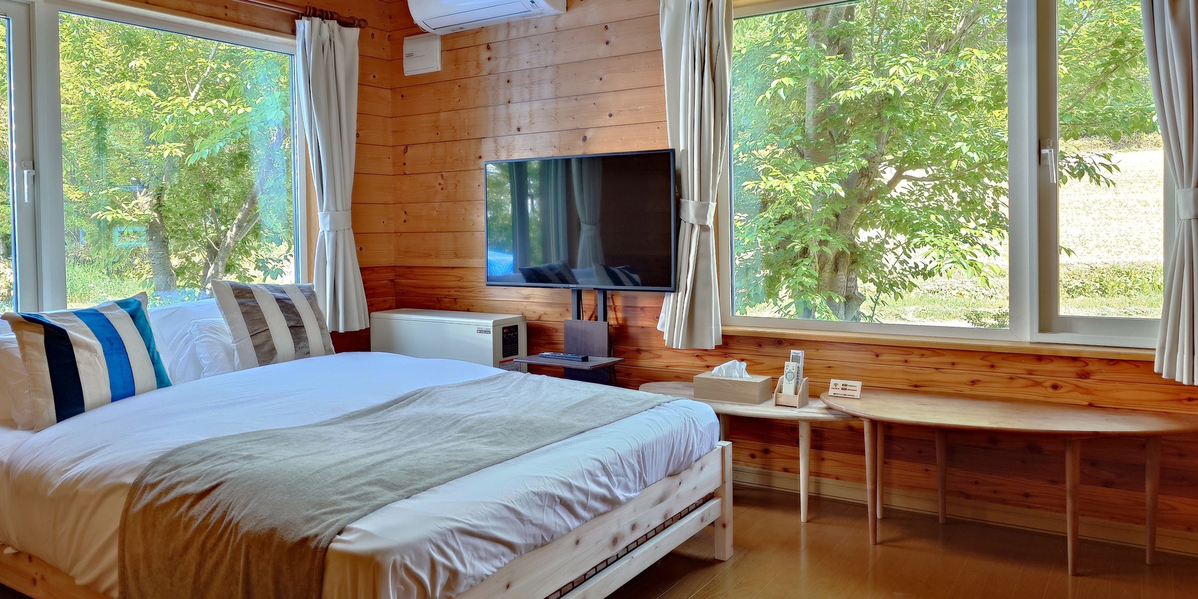 ・定期的にメンテナンスを行っておりますが、自然の中にあるコテージのため、虫が室内に入りこむ場合がございます。