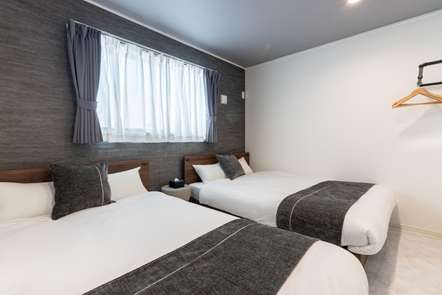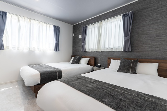 ・寝室② 洋室・ダブルベッドx2,セミダブル折り畳みベッド×1
