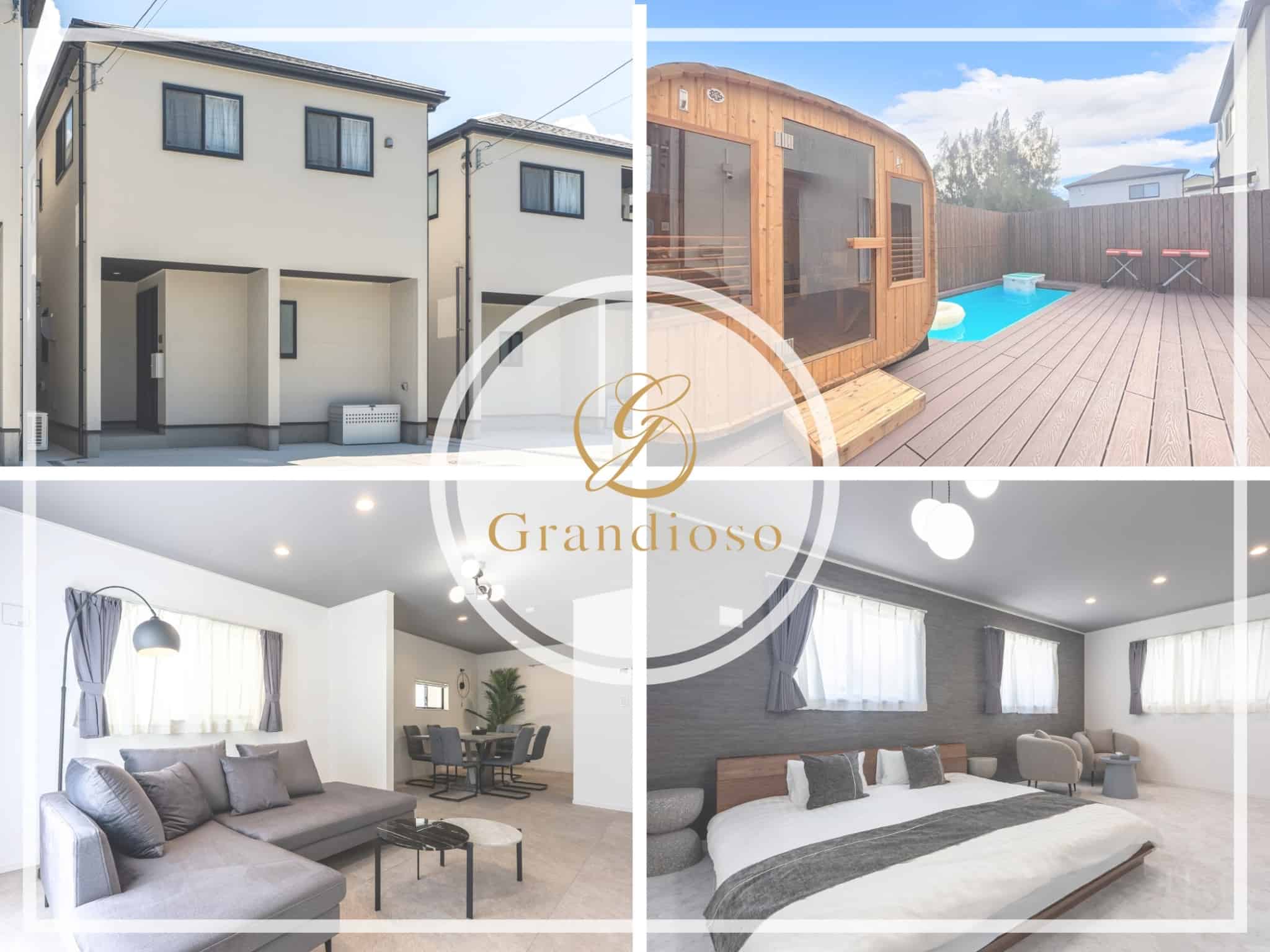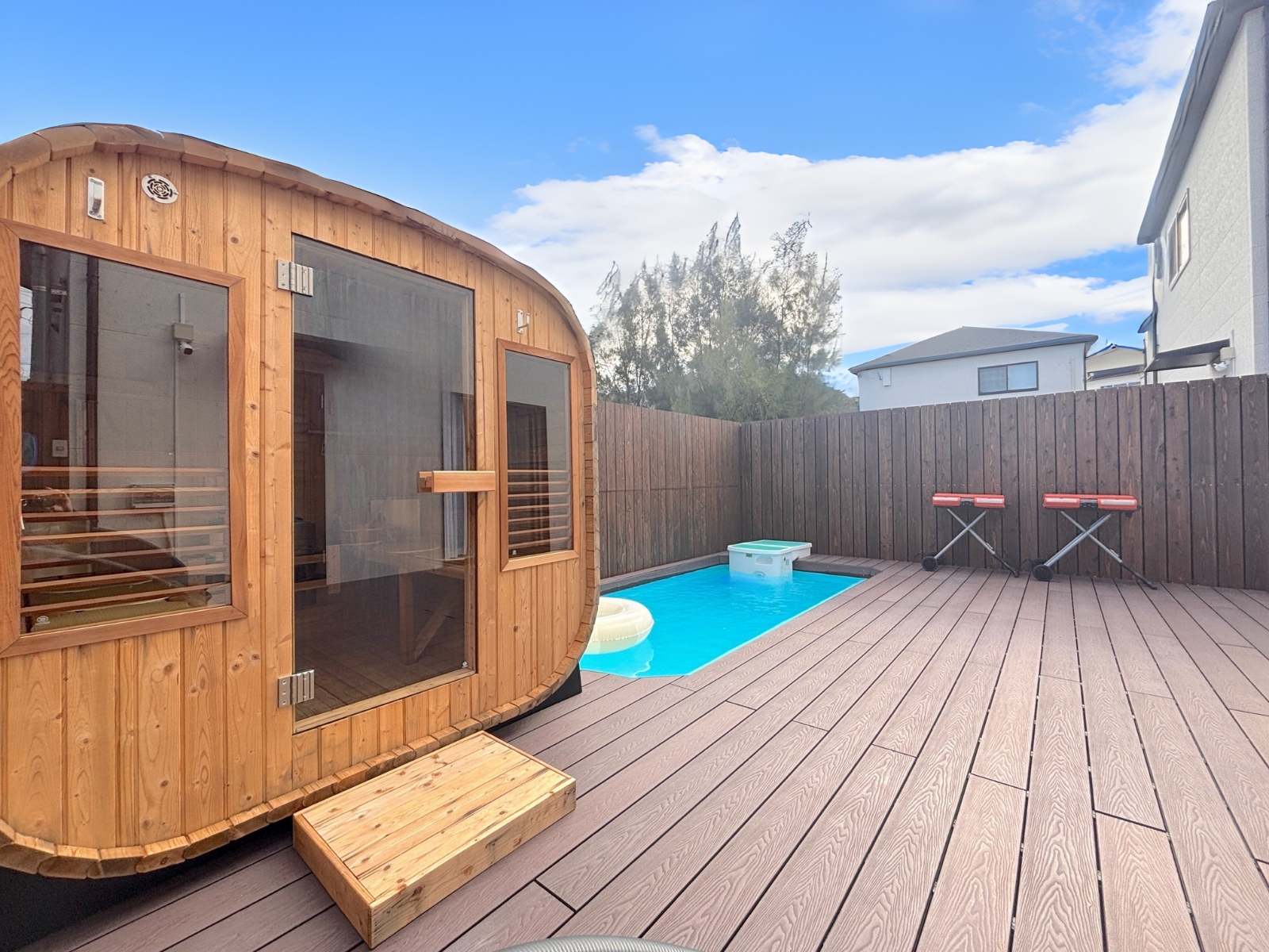 【新築(最大16名)】3LDK(120㎡)/ベッド5台+折り畳みベッド3台/プール・サウナ付/BBQ設備付/駐車2台※2泊から予約可