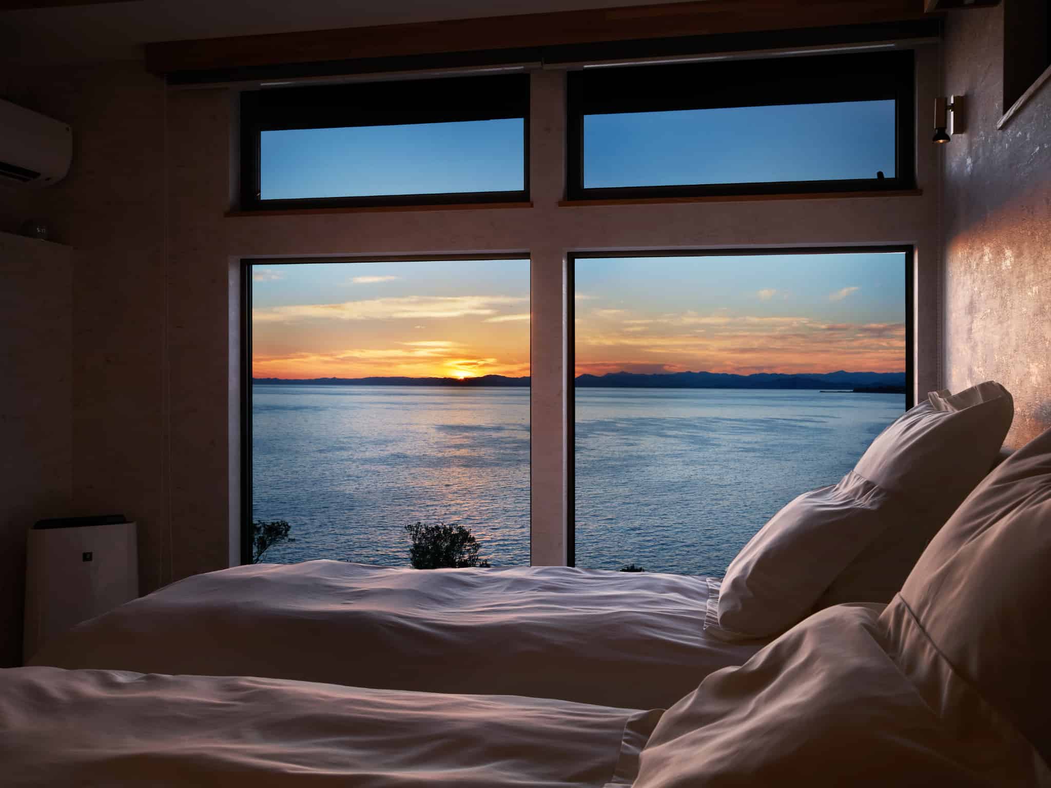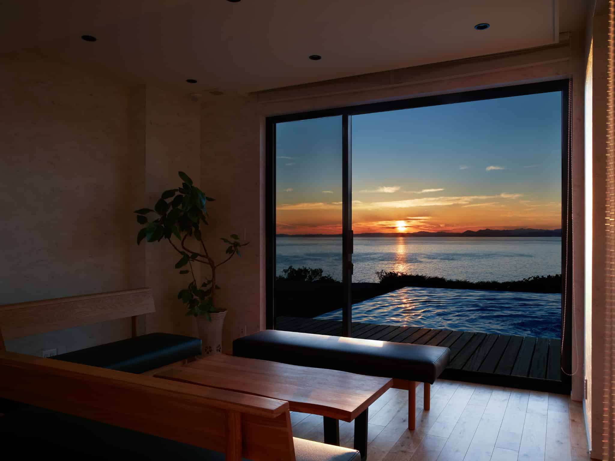一年中どのお部屋からも、夕陽を眺めることができる設計となっているので、季節ごとの表情の違いを感じてください。