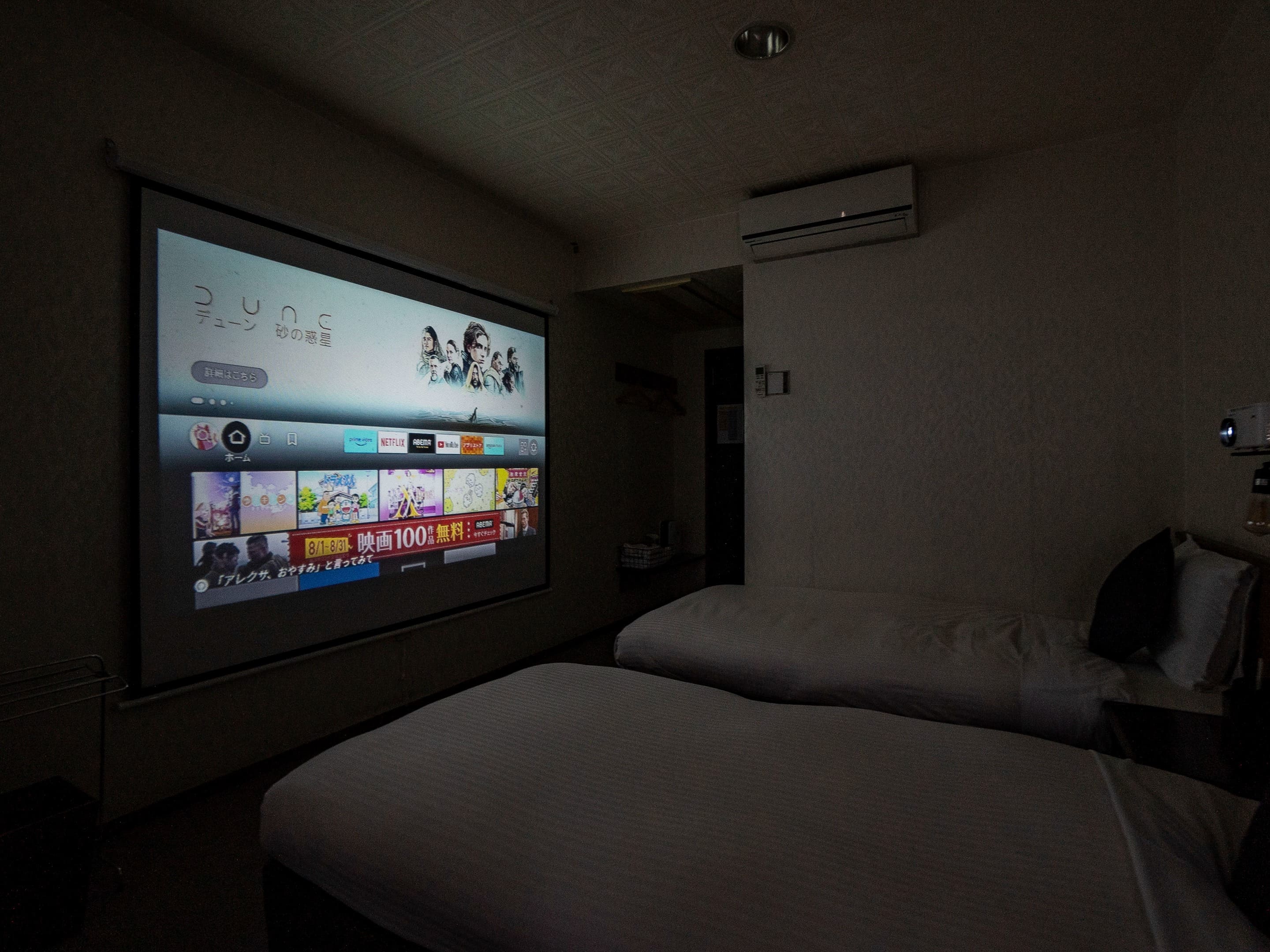 ◆大画面で映画等も視聴できます! その他にもボードゲーム、スピーカーも完備♪ プロジェクターは壁面に投影出来るので、大画面でゲームや映画鑑賞に大盛り上がり♪