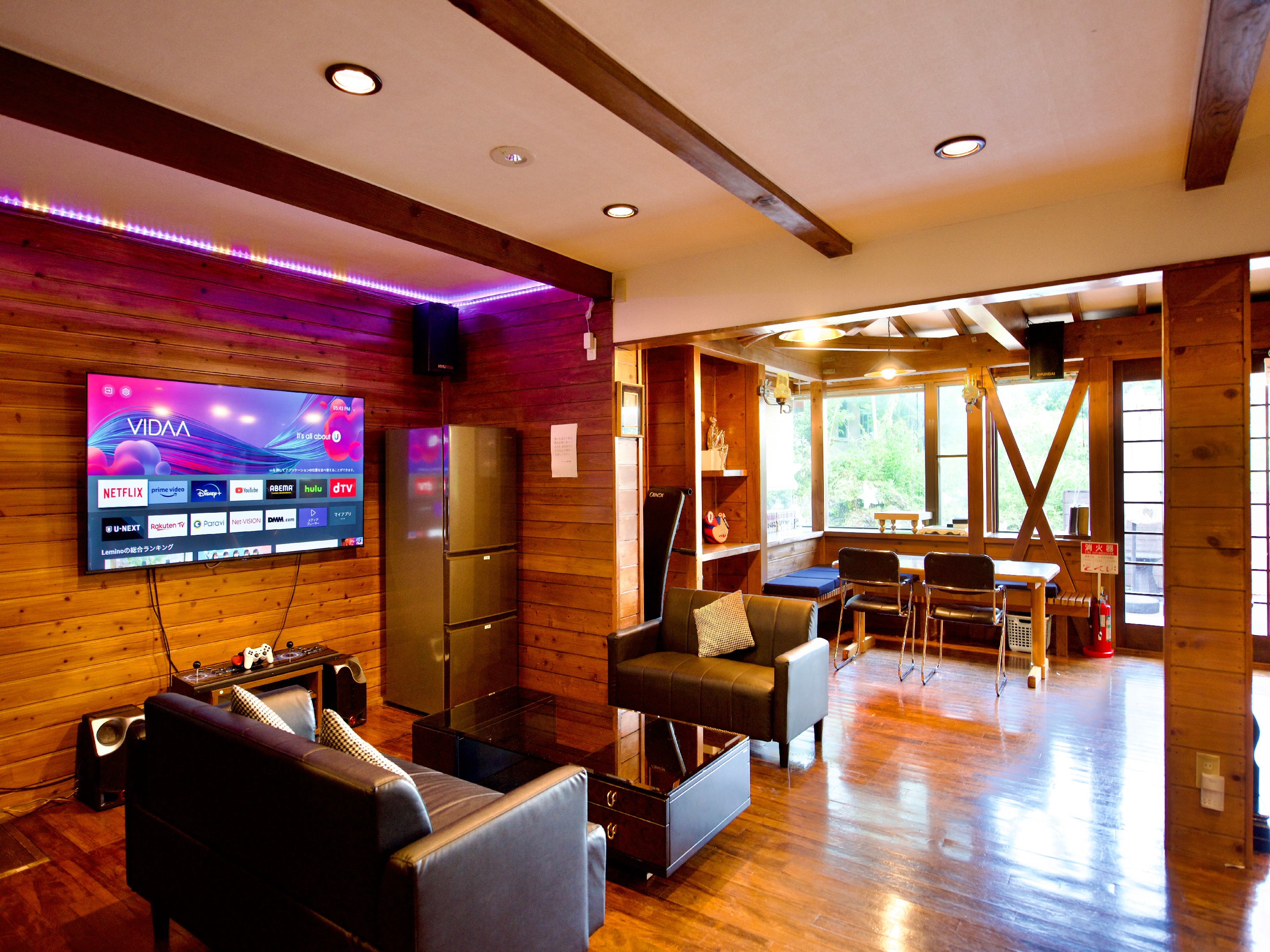 60 型テレビ(YouTubeを見ることができ)・カラオケ・ps4 ゲーム機・麻雀・漫画・キッズスペース・温泉大浴場1カ所・温泉個室2カ所