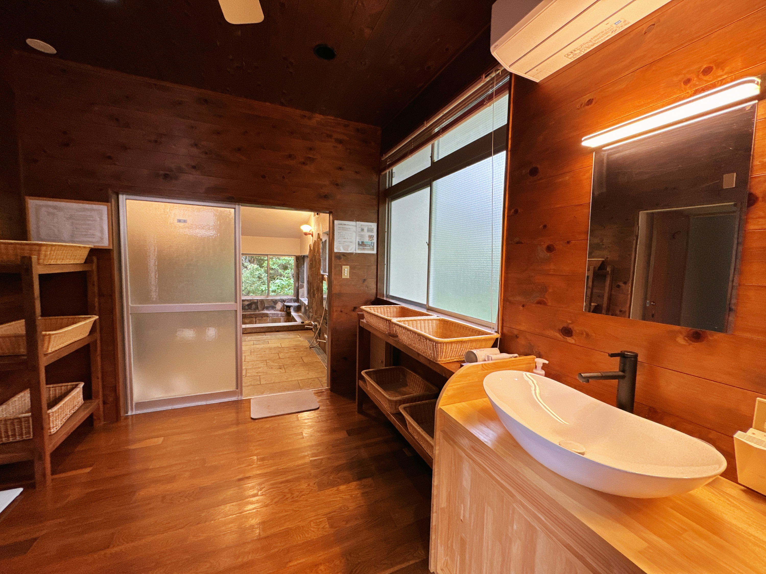 大人数対応、20名まで宿泊可能。本館1階には手軽に入れる温泉風呂が2か所。