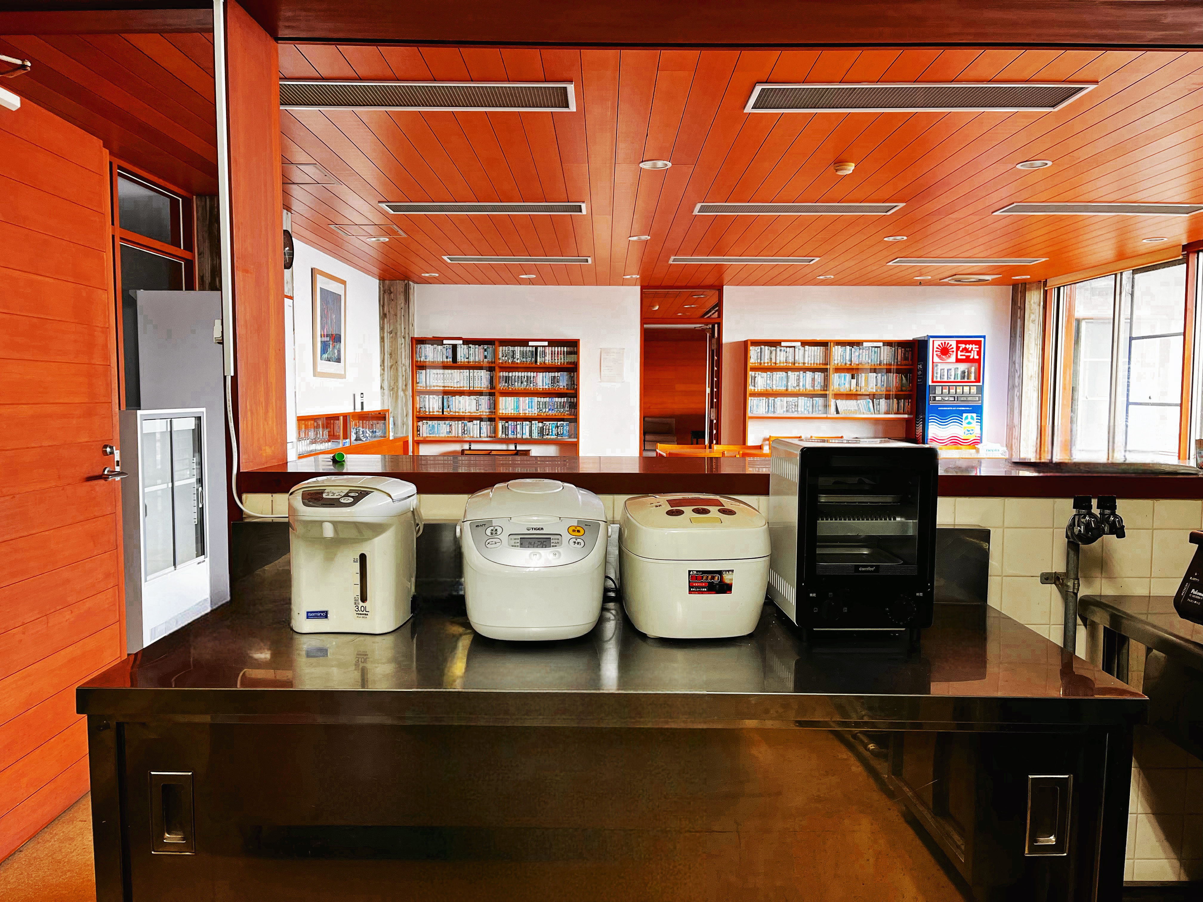ガスコンロ2台・冷蔵庫356L・冷凍庫100L・冷蔵小型ショーケース・炊飯器(5合、10合)・オーブン付き電子レンジ・オーブントースター・電気ポット・コーヒーメーカー