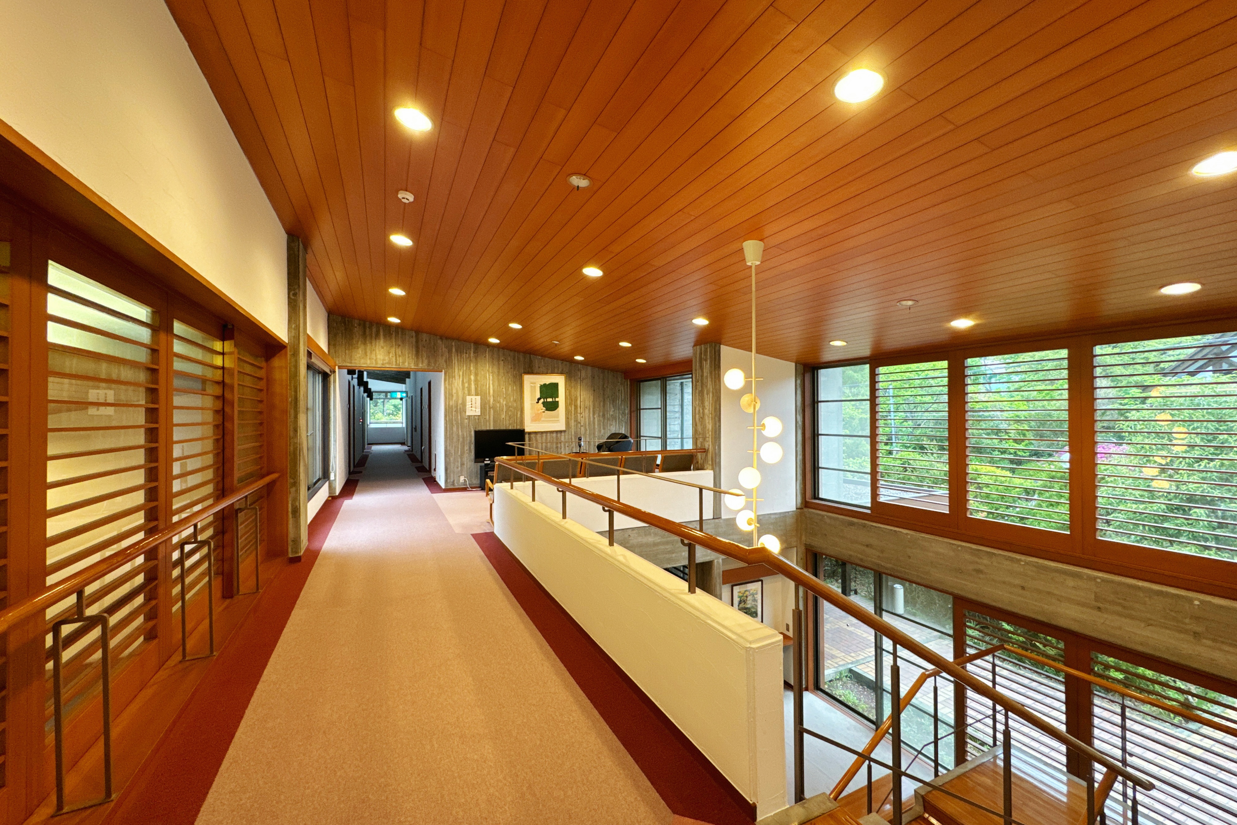 引きガラス戸を開放すればラウンジに続くウッドデッキ先には、目にも鮮やかな木々が演出する四季の情緒をお楽しみ頂けます。